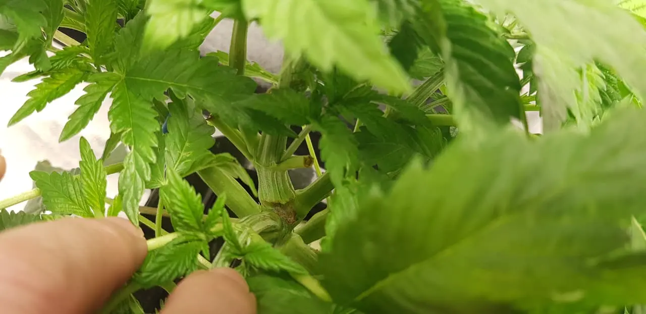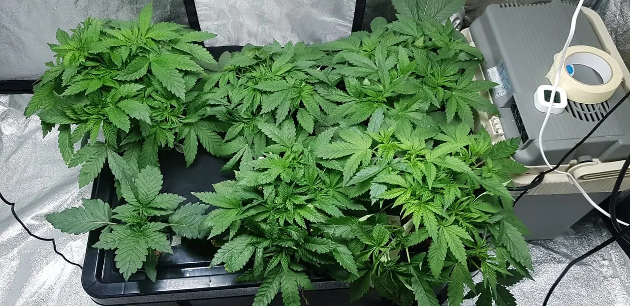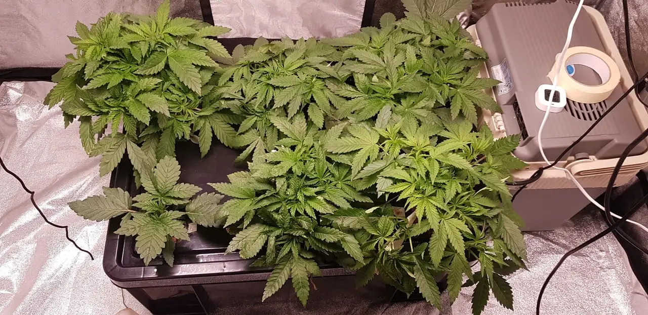 Der beschädigte Ast hat sich gut erholt. Nur die Pflanzen sind alle so kurzwüchsig. Weiss nicht warum. Bei meinen anderen Grows auch. Frage mich woran das liegt. Die Lampe hängt etwa 50-60cm über den Pflanzen mit ca: 150W Beleuchtung.