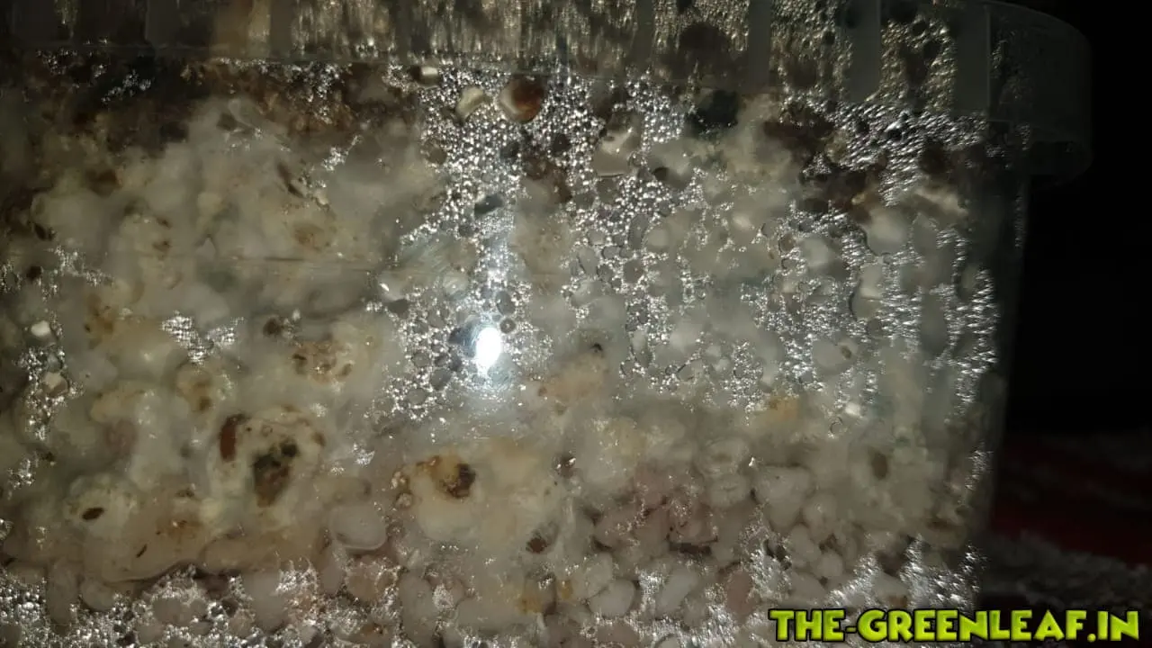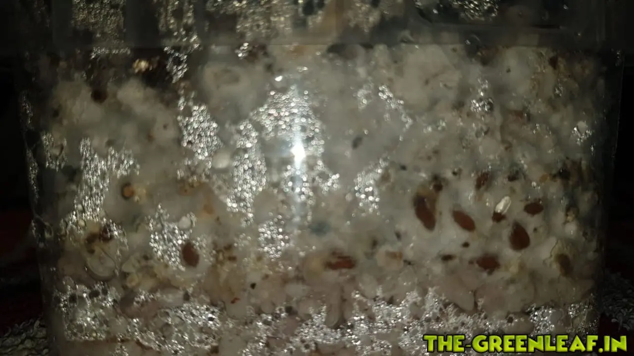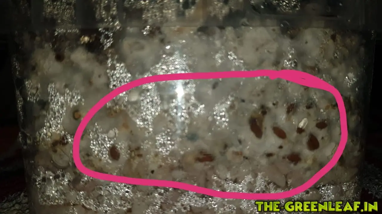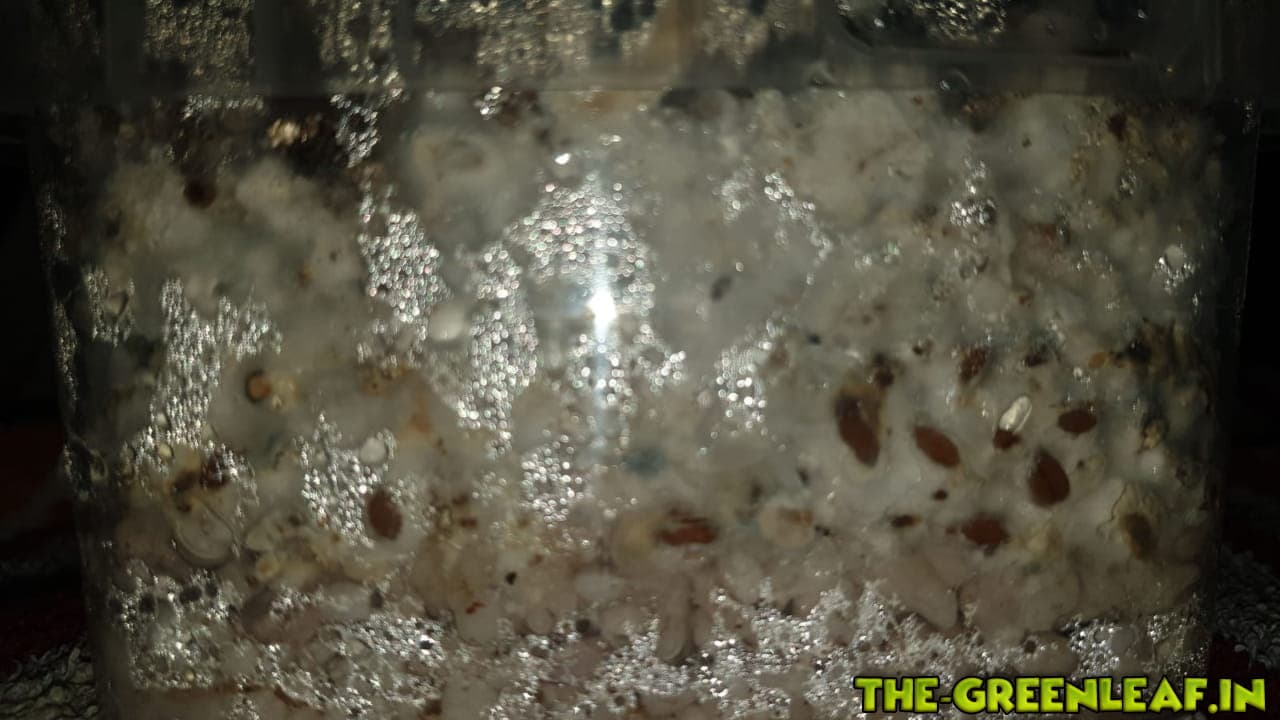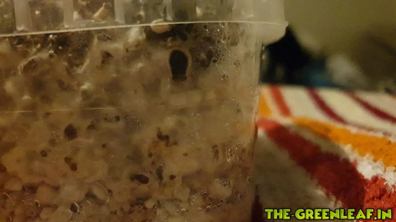 Das beimpfen der Körnerbrut verlief fein und keine Verfärbungen waren zu sehen weder im block noch aussen.