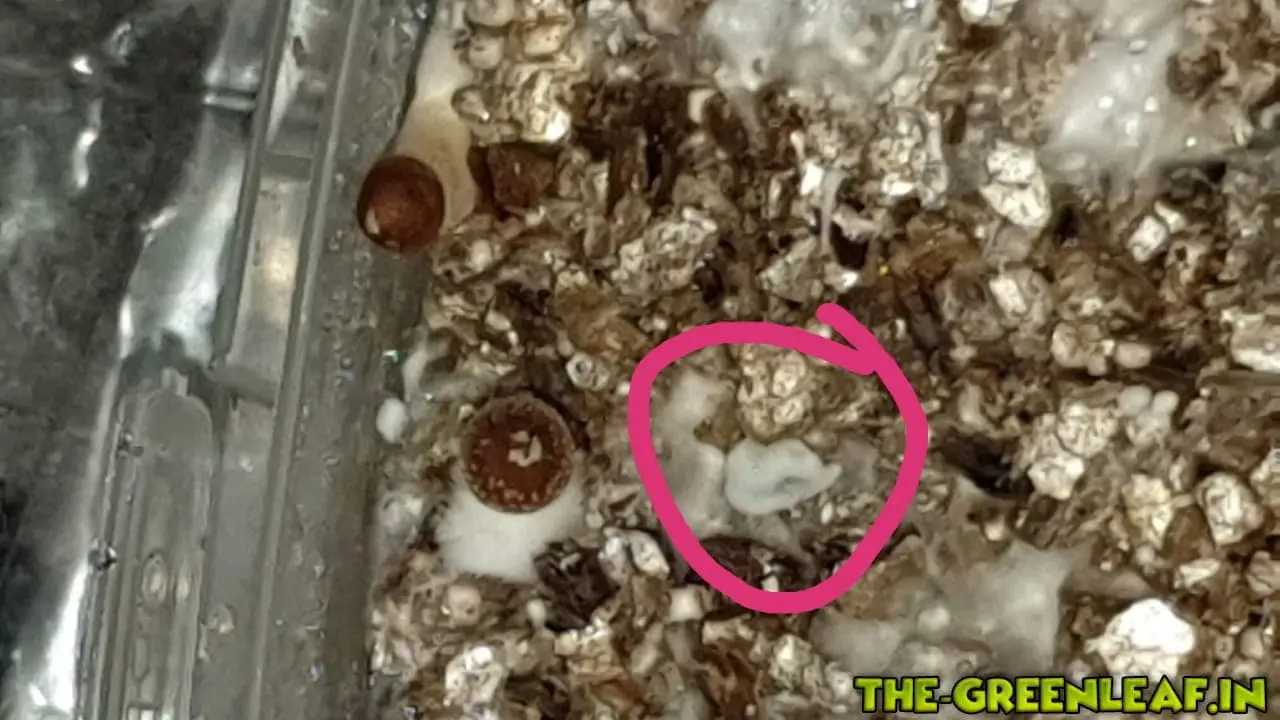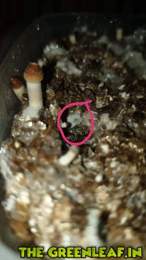 Allerdings machte ich an den seiten im Substrat und teilweise seitlichen Fruchtkörpern eine nicht so schöne Entdeckung.