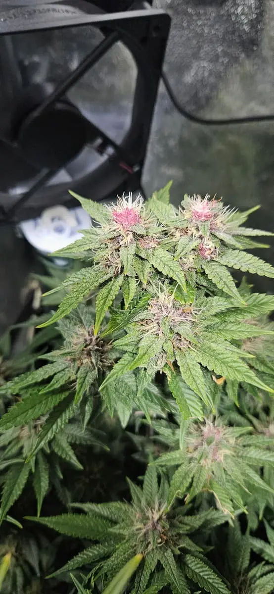 Dürfte dafür zuwenig Licht sein. Sind tropicana poison, Samen von der letzten Zwitterei. Gezwittert hat hier nichts soweit ich sehe. Von 8 stck 4 rote.