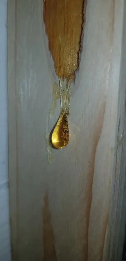 zu spät - aber ist bloss ein Holzbalken wo Harz rausfliesst.