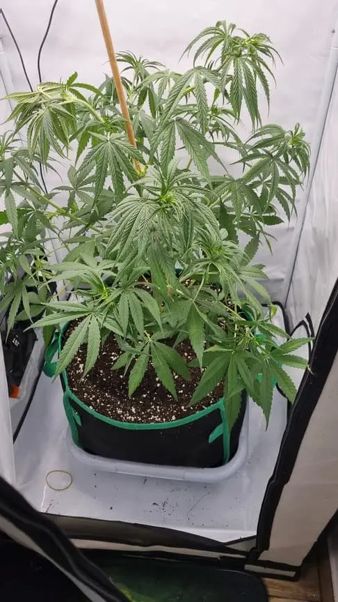 Heute in 30lt umgetopft. Dabei ist der Haupttrieb geknickt. Habs mit tape fixiert.