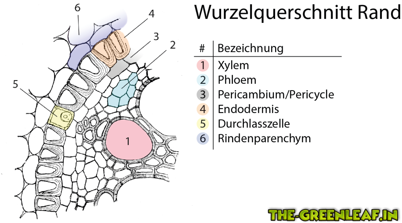 Sie ist vom Zentralzylinder die nächste Schicht, noch vor der Rinde. Durchlasszellen pressen Wasser in den Zentralzylinder – Wurzeldruck entsteht.