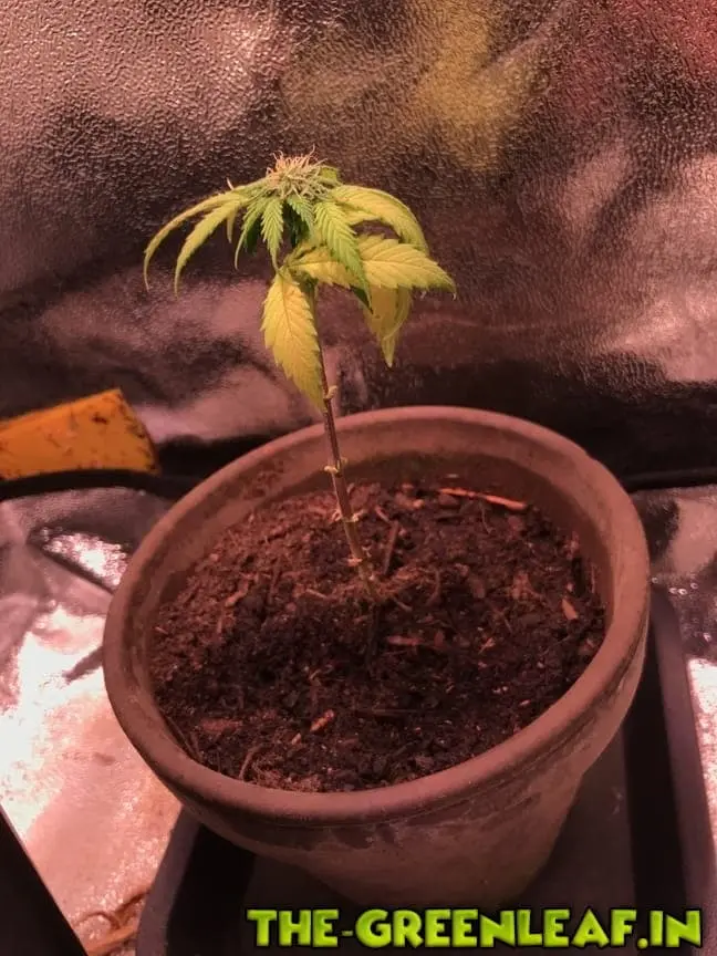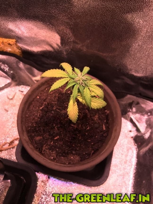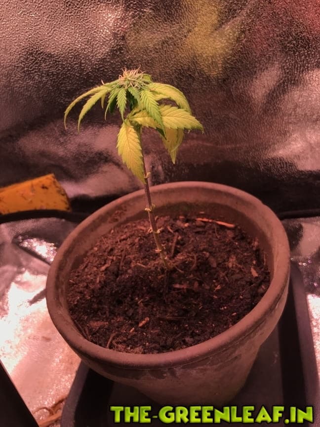 ..Er meint es wäre eine OG Kush Auto in der 3. Woche.. die 90% der Blätter hat er abgeschnitten weil sie wohl zu gelb waren.. naja