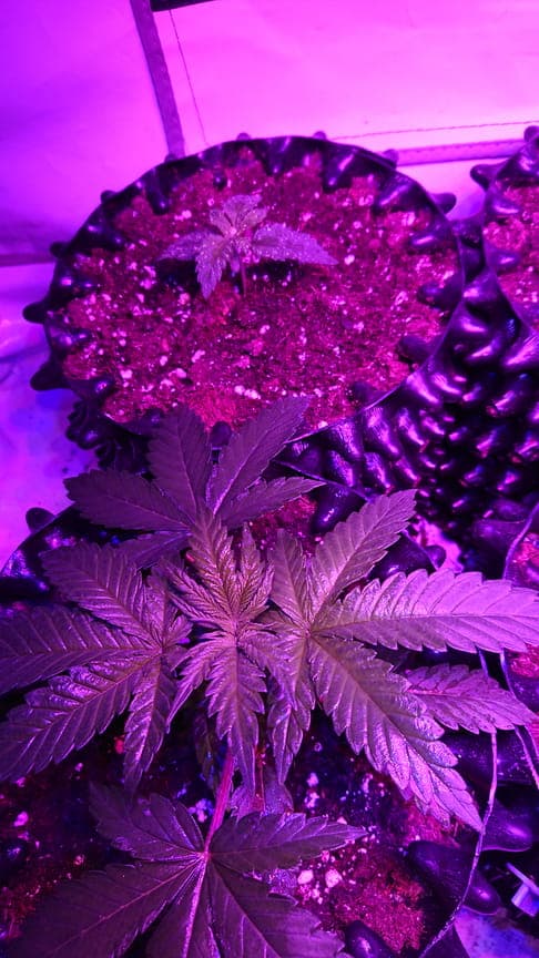 Leider ist mir die Sorte der größeren Dame nicht bekannt. Hatte noch einen Seed über der aber nicht beschriftet war. Ist ca 3-4 Wochen alt und war, bis ich das Zelt aktiviert hab, im Garten.