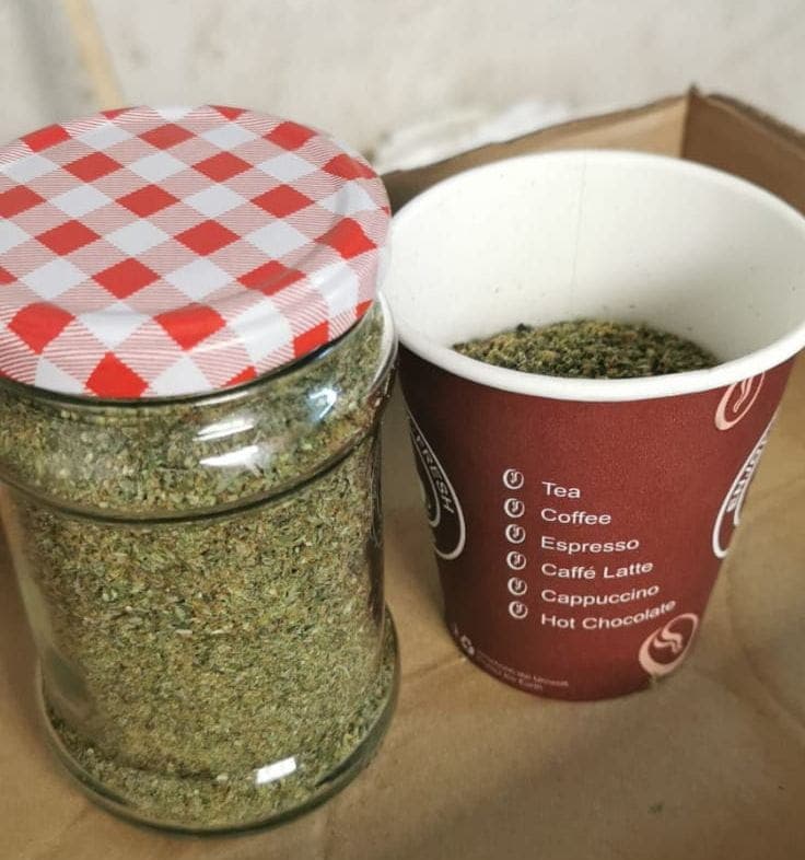 Im Glas und Becher sind 57.3 gr Küchenkräuter, evtl gut zum bestreuen der Pizza