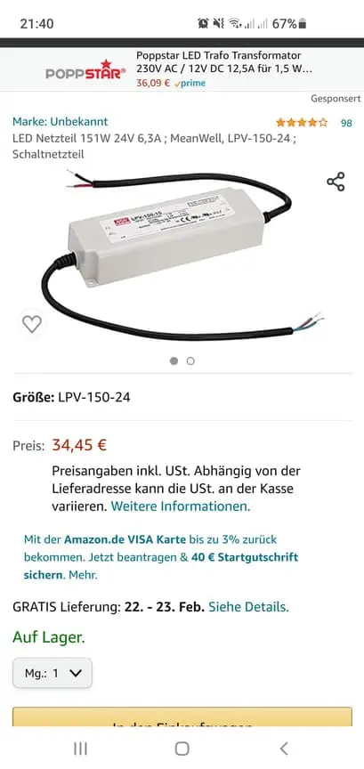 Okay Wulfman77 also nur das Netzteil ohne Wiederstände in reihe?