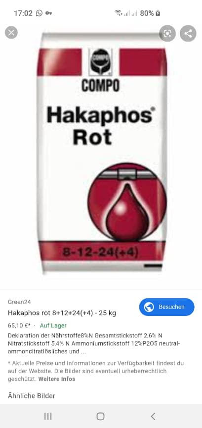 Habe schon 2 mal mit hakaphos Rot gegossen erstmal mit 1g auf 1 L und zweite mal etwas mehr!