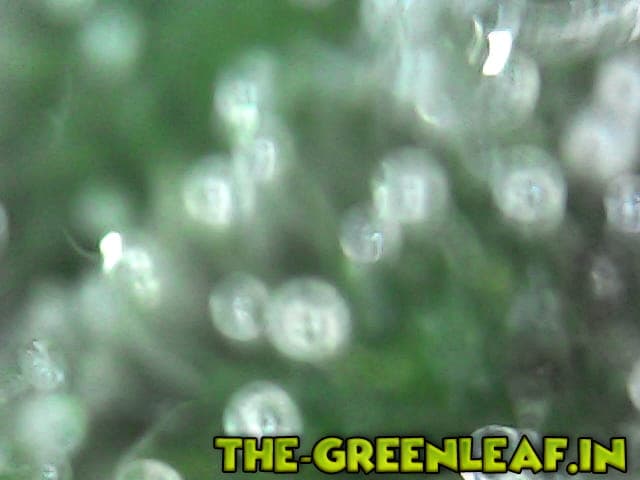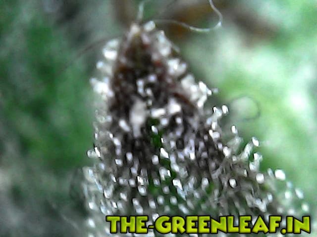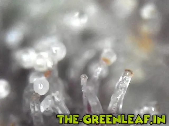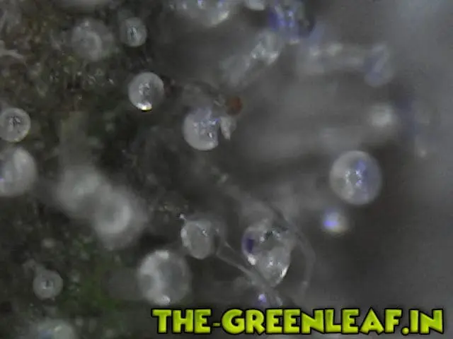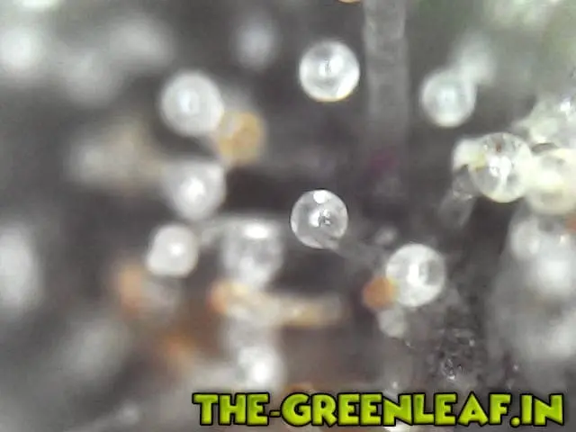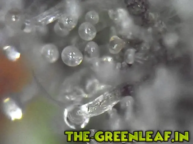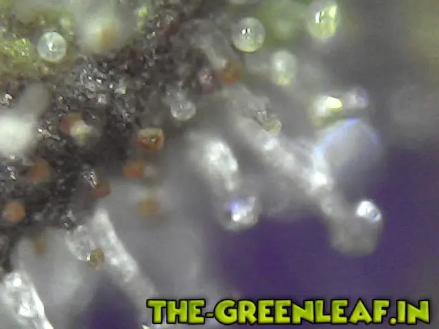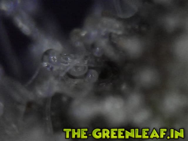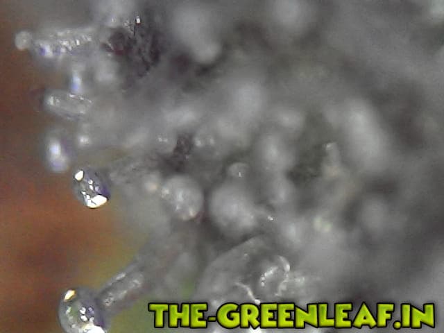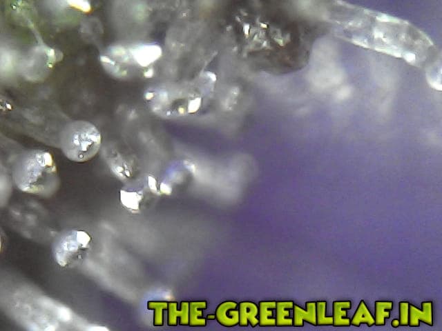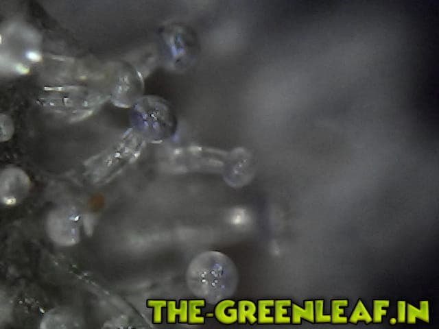 Die Trichome stammen von einem Stück vom Blatt was ich mit der Schere abgeschnitten habe direkt vom Headbud