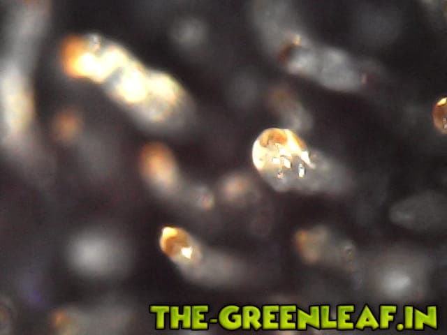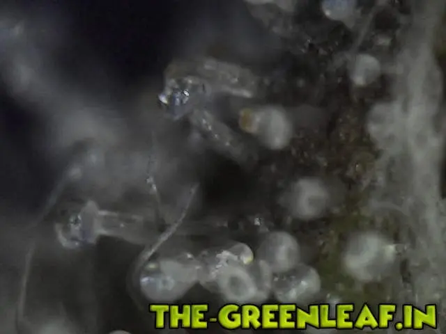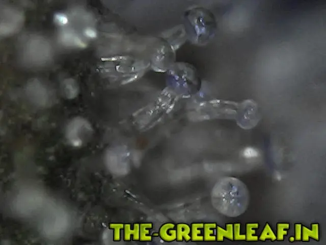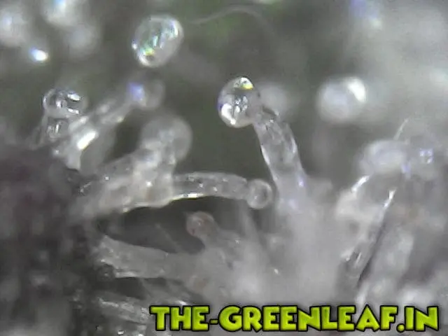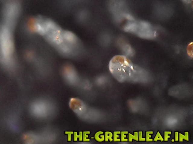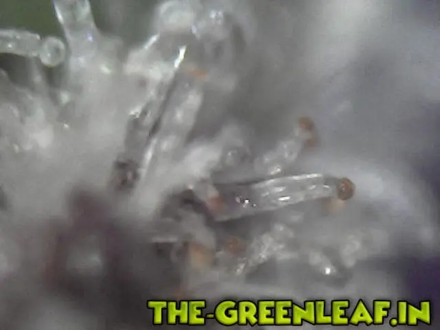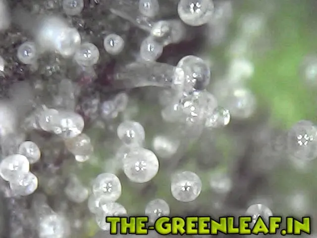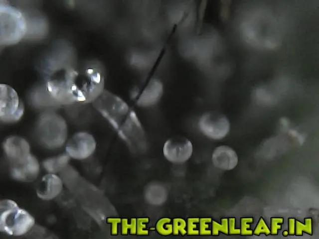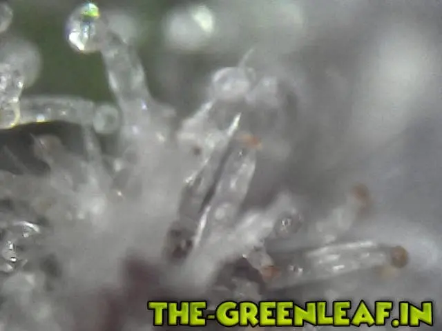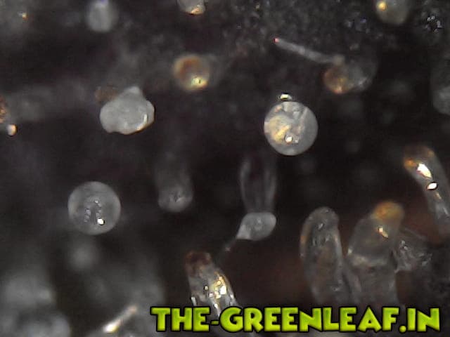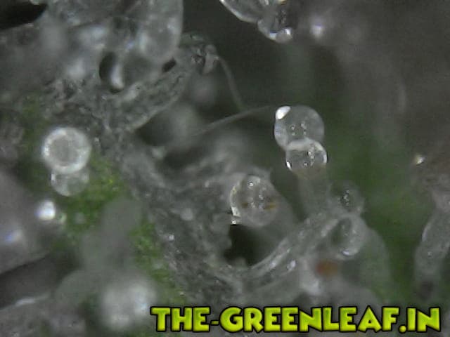Die Trichome stammen von einem Stück vom Blatt was ich mit der Schere abgeschnitten habe direkt vom Headbud