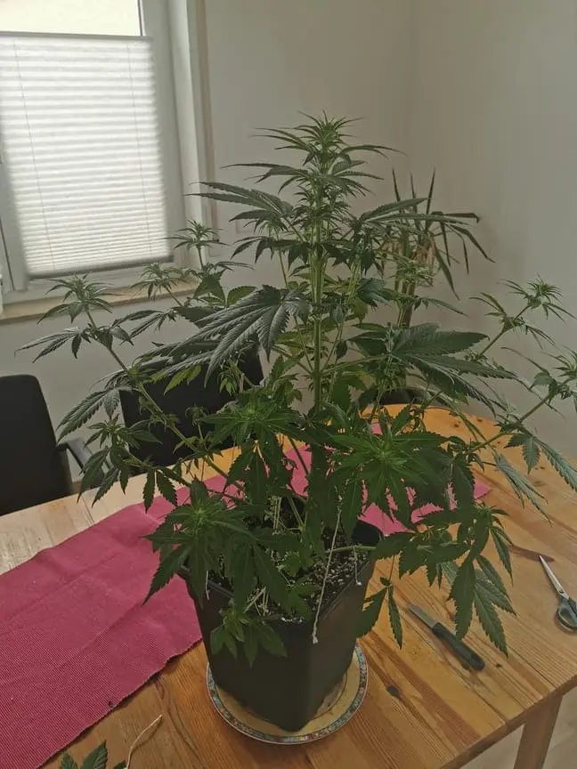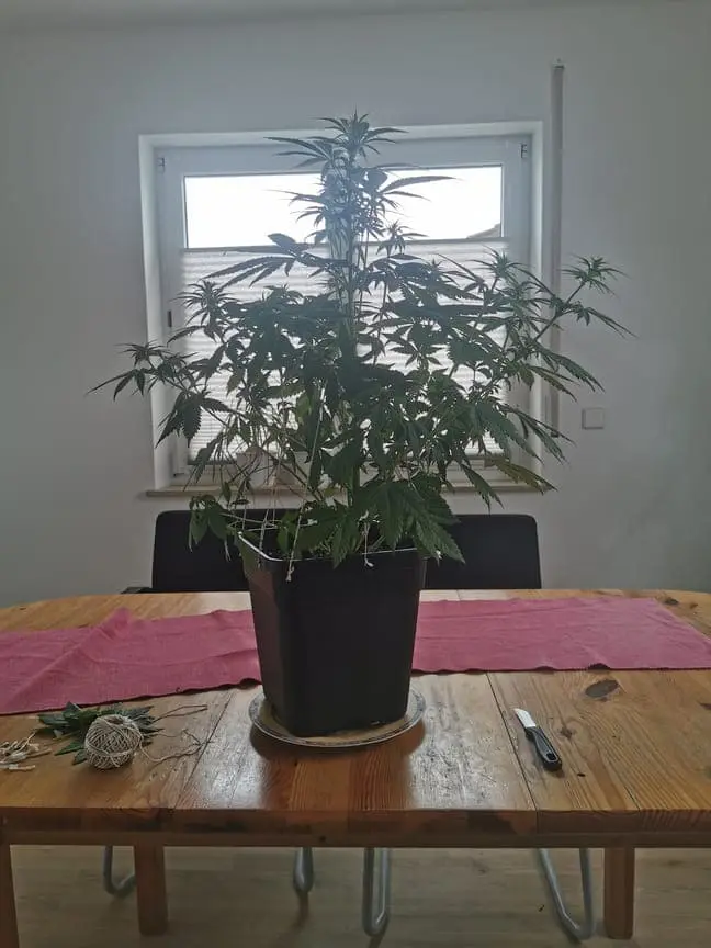 Ich habe mal ein Allgemeines Thema, und zwar geht es um das Zuschneiden der Pflanze. Erstmal was haltet ihr davon und was ist eurer Meinung nach der beste Weg die Pflanze gut durch zu bringen? Ich habe mir eigentlich von Anfang an gedacht das ich sie einfach wachsen lasse wie sie wächst und sie nicht zuschneide, allerdings werden die Blätter doch sehr groß und verdecken den vielen kleineren trieben das Licht der Lampe wodurch ich nun doch am Überlegen bin sie etwas zu stutzen. Allerdings habe ich davon nicht so viel Ahnung es ist meine erste Pflanze und ich will Grundsätzlich eine möglichst naturnahe Pflanze aufziehen aber trotzdessen natürlich auch einen guten Ertrag erzielen. Bis jetzt sieht die kleine sehr gut aus wobei sie es leider durch das Wetter etwas zu warm hat. Beim düngen halte ich mich dezent lieber etwas weniger als zu viel ist da denke ich nicht verkehrt. Vor 36 Tagen habe ich den Keim auf den weg ins Leben losgeschickt und vor 27 Tagen hat sie angefangen aus der Erde zu schauen mittlerweile hat sie 31cm und viele schöne Triebe.je nach dem wie groß sie in 5 Tagen ist werde ich sie in 5-10 Tagen in die Blütephase schicken. Hierzu auch die frage, wächst die Pflanze noch merkbar weiter wärrend der Blütephase? Oder hält sie sich da eher ruig?