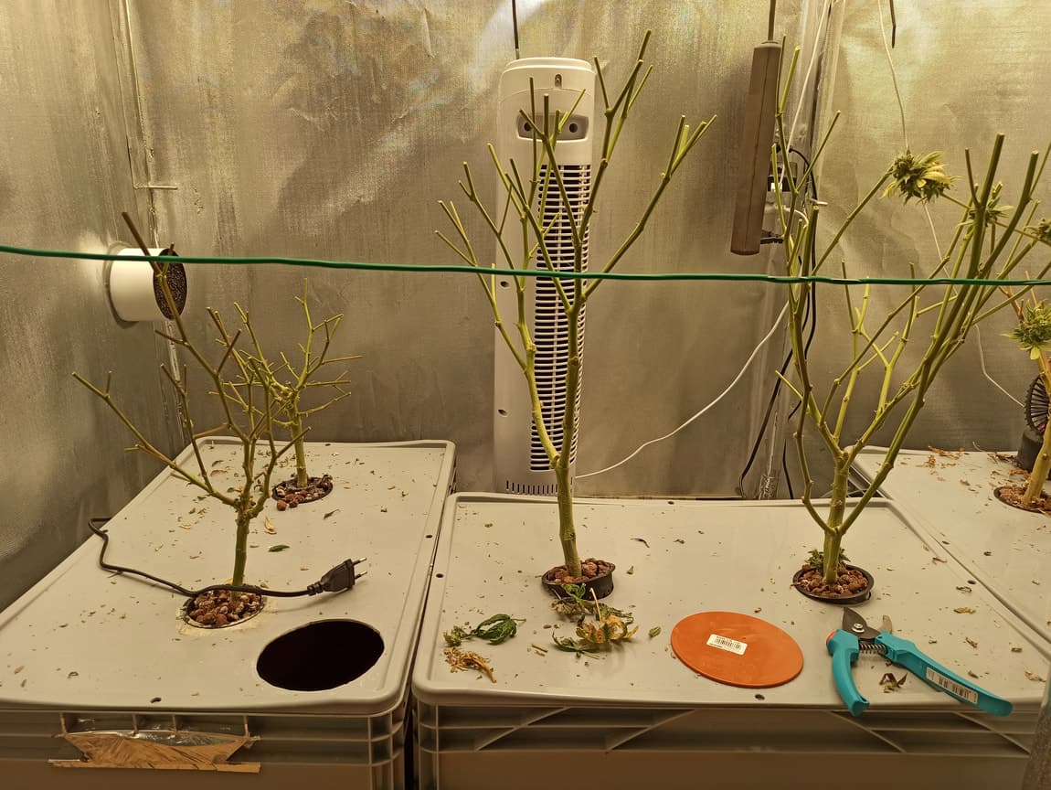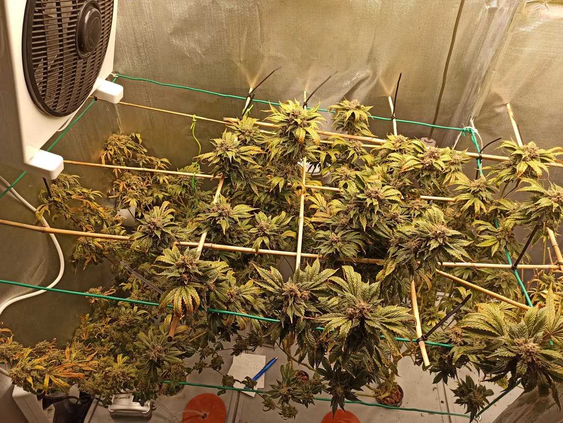 Nun sind die Stecks des Battles auch schon getrocknet und haben trotz vernachlässigter Pflege, round about 500g recht fluffige Buds abgeworfen bei 6 Pflanzen ![]()