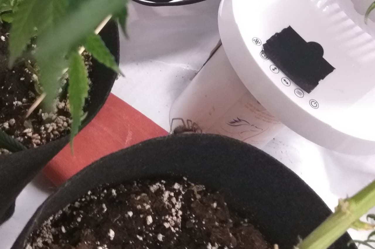Ich hatte sonst auch nix da drin, keine Fliegen, gar nichts. Keine Ahnung warum sich diese Hausspinne ausgerechnet mein Zelt als Domizil ausgesucht hat. Ich habe sie heute früh zu unser beider Vorteil todesmutig am Topf der Tatanka hinaus befördert. So verhungrt sie nicht und ich konnte mein Cannabis-Bondage durch ziehen.