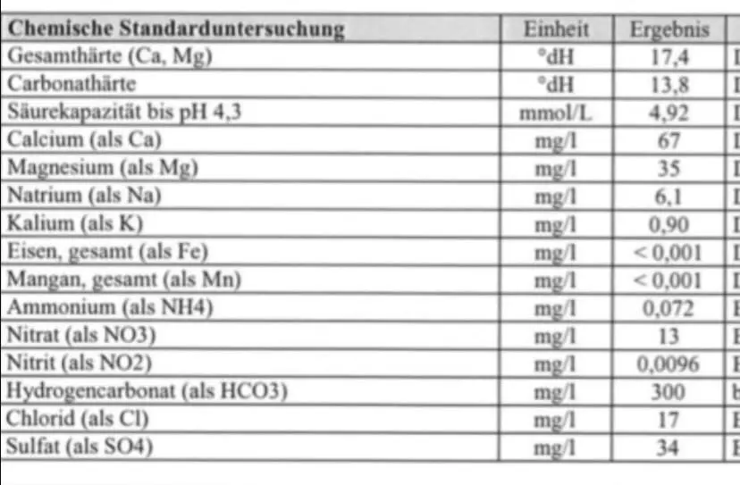 Sorry, hier die Wasserwerte: