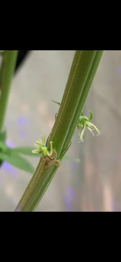 Hi Leute, hab da ein kleines Problem, ich glaub meine Pflanze zwittert…hatte sowas noch nie, kann mir das jemand evtl bestätigen? Bis jetz hab ich nur diese Bananen gesehen die gestern noch wie ein pollensack ausgschaut haben, und die is ganz unten an der Pflanze, habs schon weggeschnitten und da is megaviel staub rauskommen…