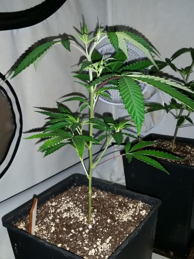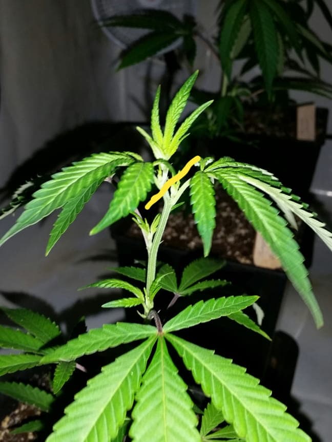 Mit Netz, runterbinden oder nochmal Toppen oder Fimmen wären die unteren Triebe auf die höhe des Haupttriebes gewachsen.