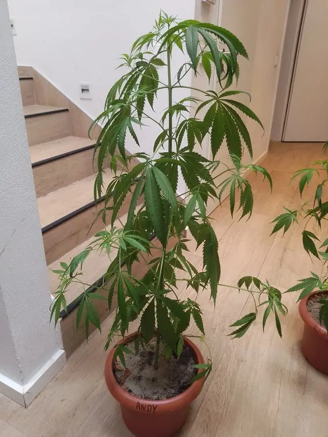 Andy ist am höchsten mit 119cm inkl. Topf. Das ist natürlich viel zu hoch, zudem sind die Internodien abstände teilweise bis zu 15 cm. Es wurde also zu wenig und viel zu spät geschnitten.