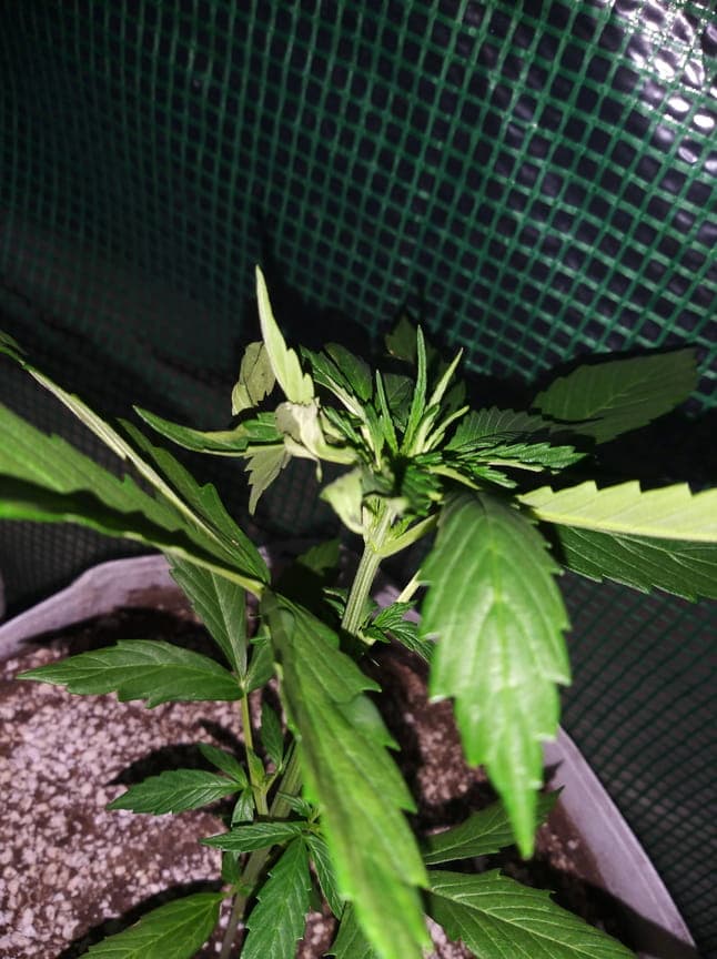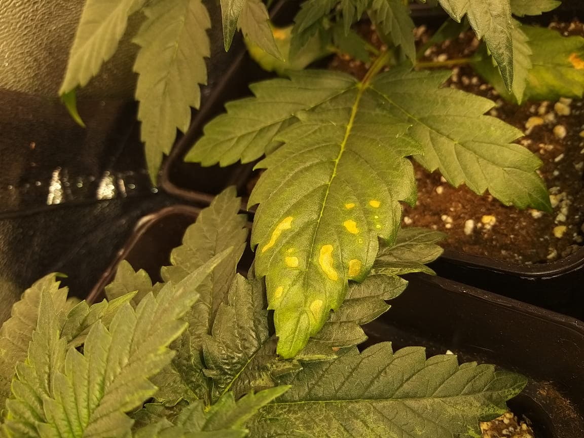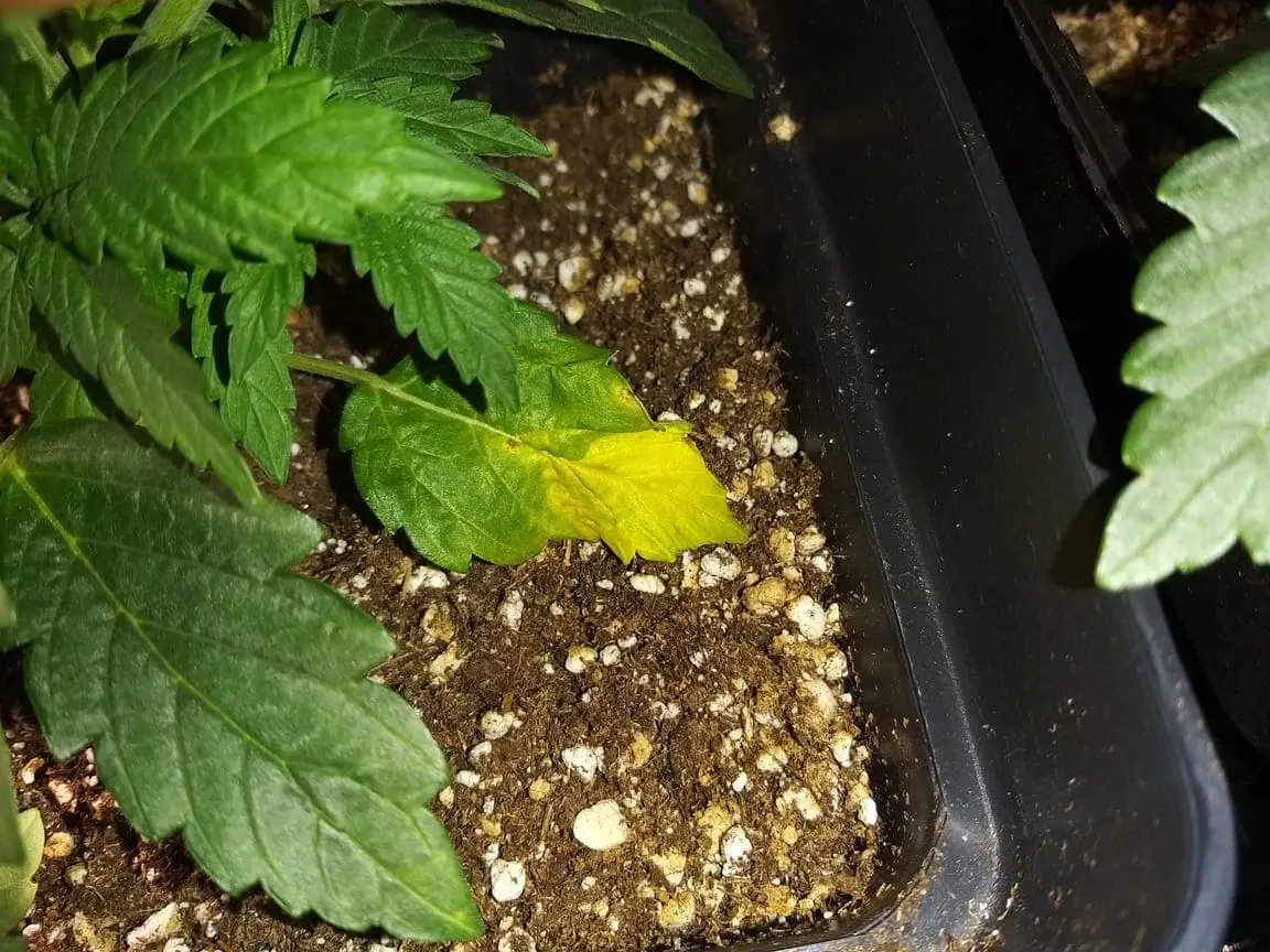 Ich danke euch vielmals für eure Mühe und euren Zeitaufwand. Ich wäre sehr froh um eine erneute Hilfe. Bei ein paar wenigen der Schatzis zeigen sich auf den untersten blättern leichte Verbrennungen wie auf dem Bild zu sehen. Sind dies noch Folgen der Überwässerund und die Schatzis versorgen die kaputten unteren blätter nicht mehr? Kann es aufgrund der scharfen erde sein? Muss ich mir Sorgen machen? Wenn ja, was kann ich tun? Gedüngt wurde immer noch nicht. Sie sind nun bei Tag 20 +- und ich habe vor drei Tagen den Lichtzyklus auf 12 stunden gewechselt. Ich danke euch schon im Voraus und wünsche eine grüne Woche!