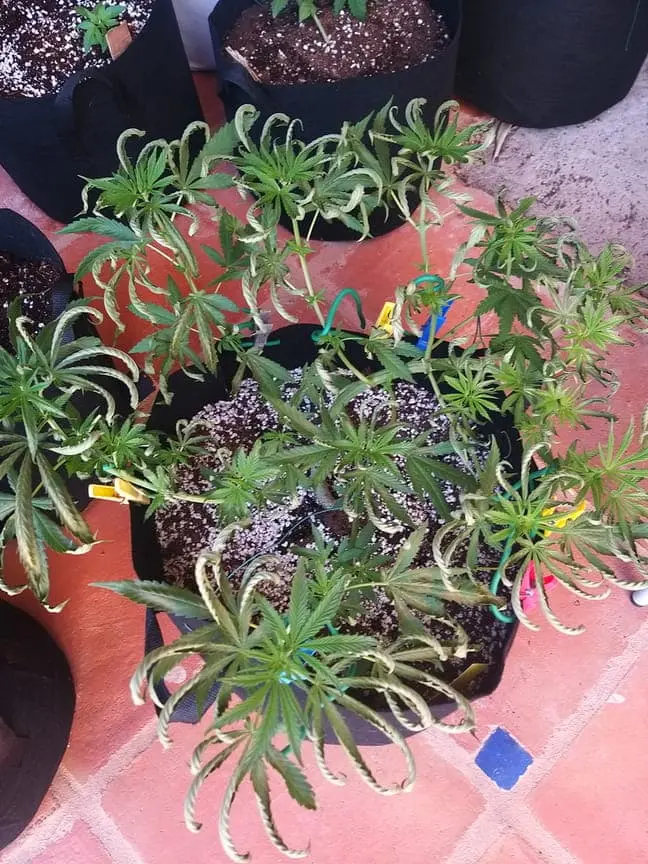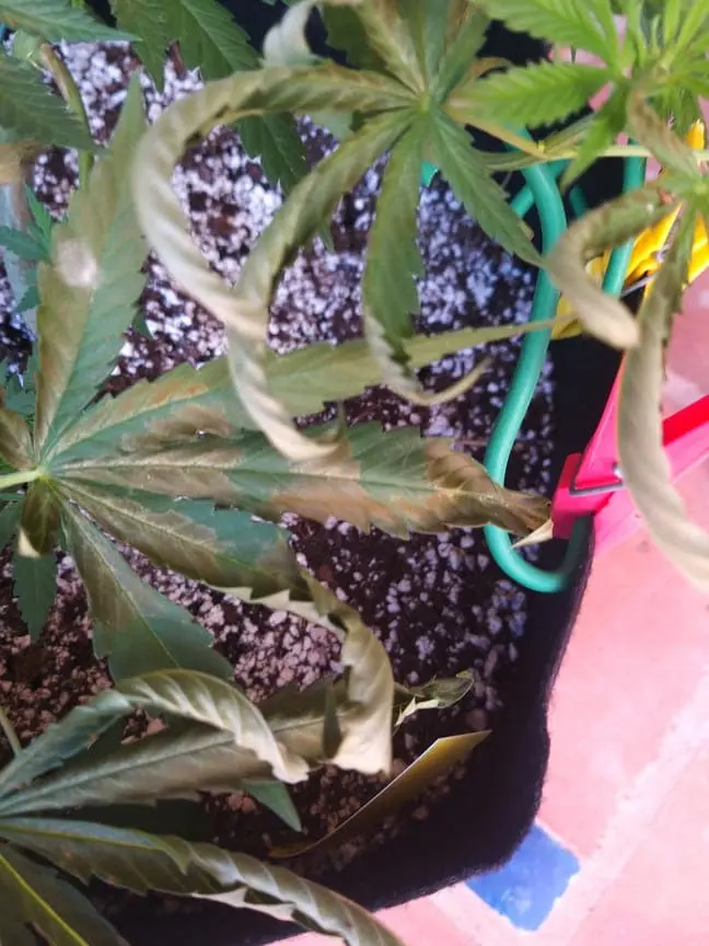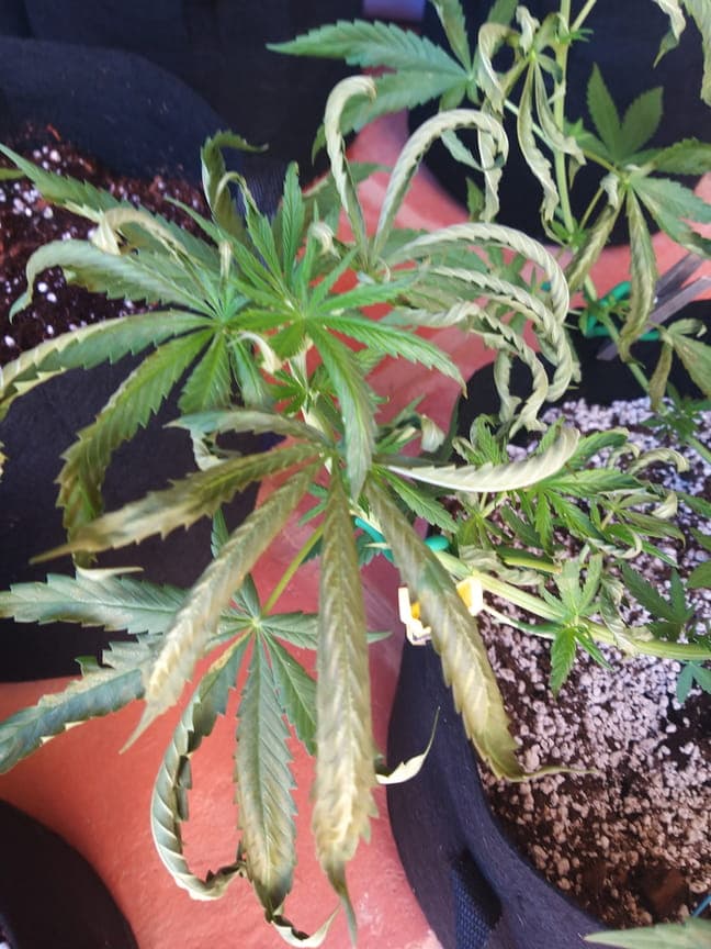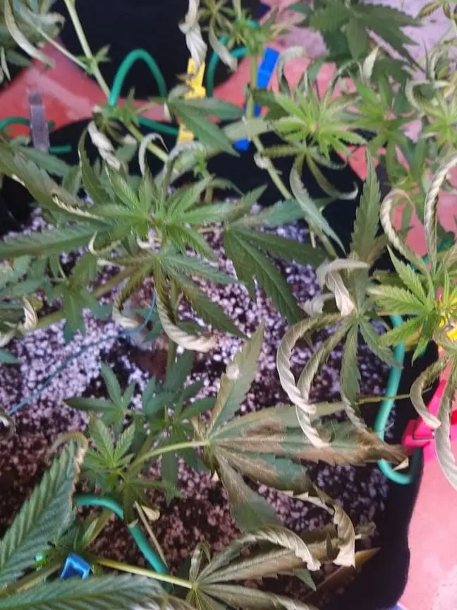 Gestern mussten wir unsere Töpfe aufgrund eines kletternden Nachbarns umstellen. Die vom Problem betroffenen sechs Pflanzen haben wir 1 Meter entfernt von den anderen hingestellt und zwar neben unsere Poolreinigungspumpe. Der Bubblegum zeigte sofort Stresssymptome wie auf dem Foto zu sehen ist und dies hat sich bis heute 24 stunden danach nicht gelegt. Im Gegenteil, die anderen fünf daneben zeigen nun genau die gleichen Symptome. Bis gestern sahen sie noch wunderschön und top fit aus. Alle anderen Pflanzen sind fit. Es kann sein dass eventuell ein kleines bisschen Chlorwasser unter die Stofftöpfe gelaufen ist, aber ich kann mir nicht erklären wie das Auswirkungen auf den SC mit Untertopf gehabt haben sollte. Könnt ihr mir bitte weiterhelfen? Was haben sie nur? Kann nichts mit Ernährung sein und mit Umstellen im Allgemeinen hatte ich nie Probleme. Kann die Luft irgendwie verschmutzt sein durch Chlor? Ist das ein sich verbeitender Pilz oder keine Ahnung? Stehen alle Outdoor. Wasser normal PH 6,5, düngen ab und zu mit Canna und bisschen Silica von GHE. Bin echt am verzweifeln. Beste Grüsse