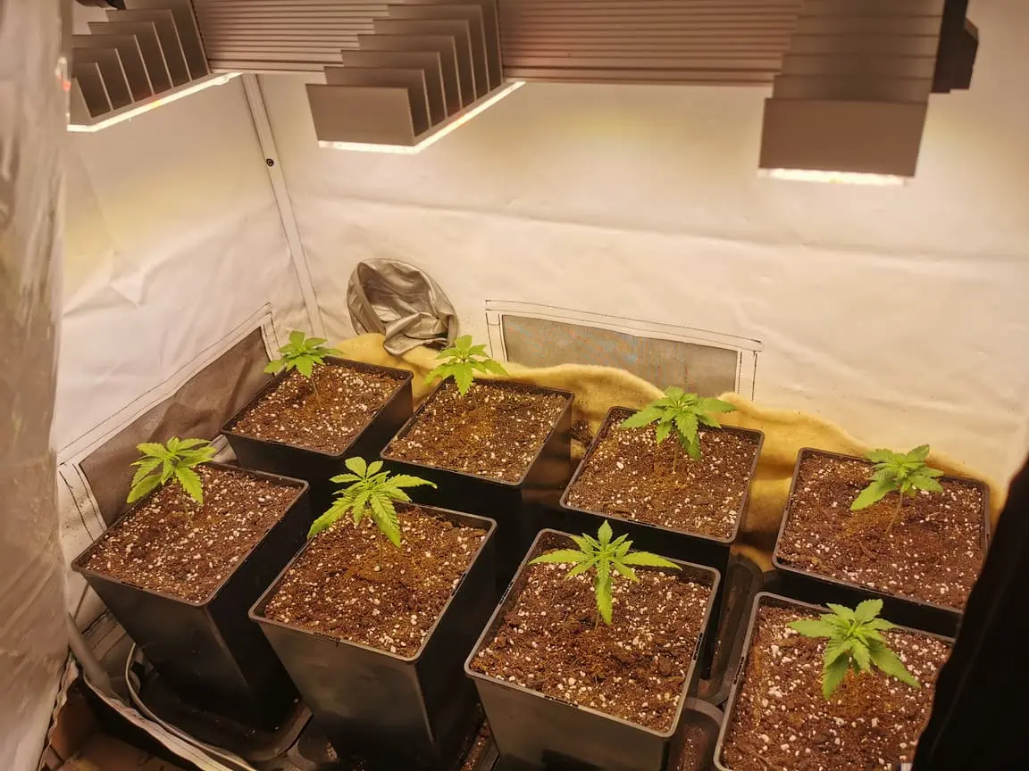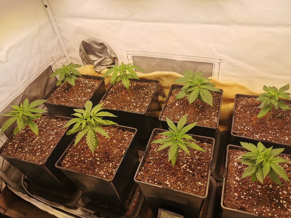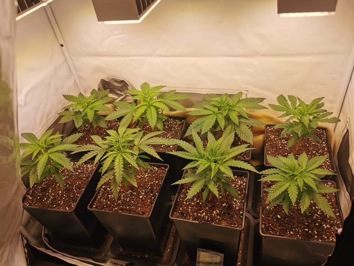 Und hier noch frisch umgetopft unter Sanlight Evo 80 - - - 3 x Cream Caramel - 3 x Critical Mass und 2 x OG Kush. Dazu muss ich sagen das ich ein wenig rumprobiere mit selbstgemischter Erde, die hoffentlich bis kurz vor Ende durchhält mit Futter.