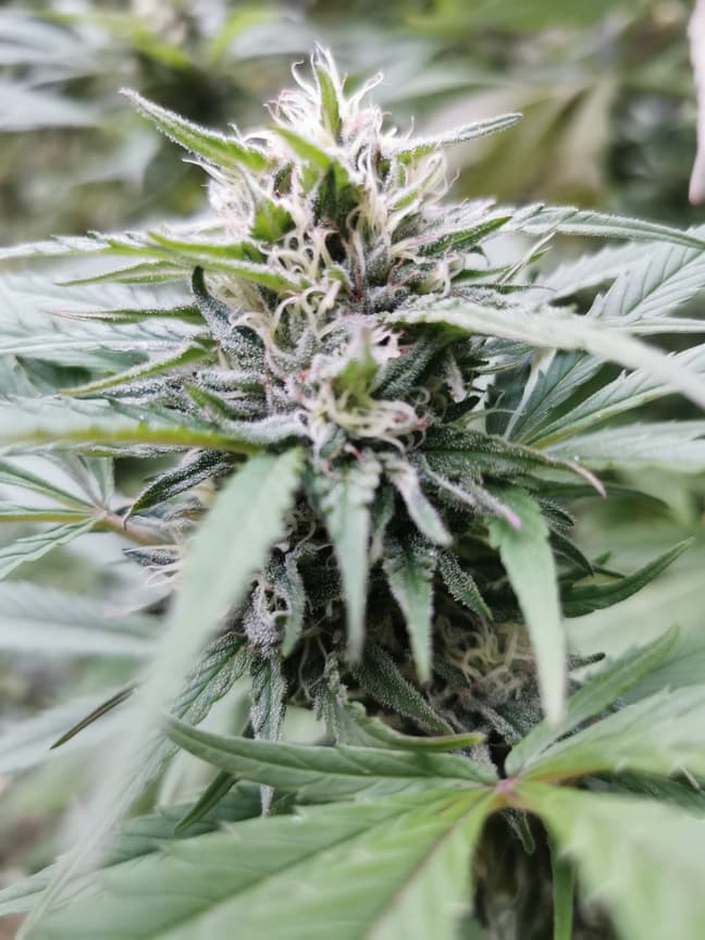 Hier noch zwei Bilder von einer meiner insgesamt 2 Grapefruit die Outdoor stehen. Die dritte ist ne White Widow. Oben am Mainbud gut zu erkennen (kleine braune Stelle) mit Schimmel, welche ich sofort nach dem Foto weggeschnitten habe. Ansonsten bin ich bis jetzt mehr als zufrieden ![]()