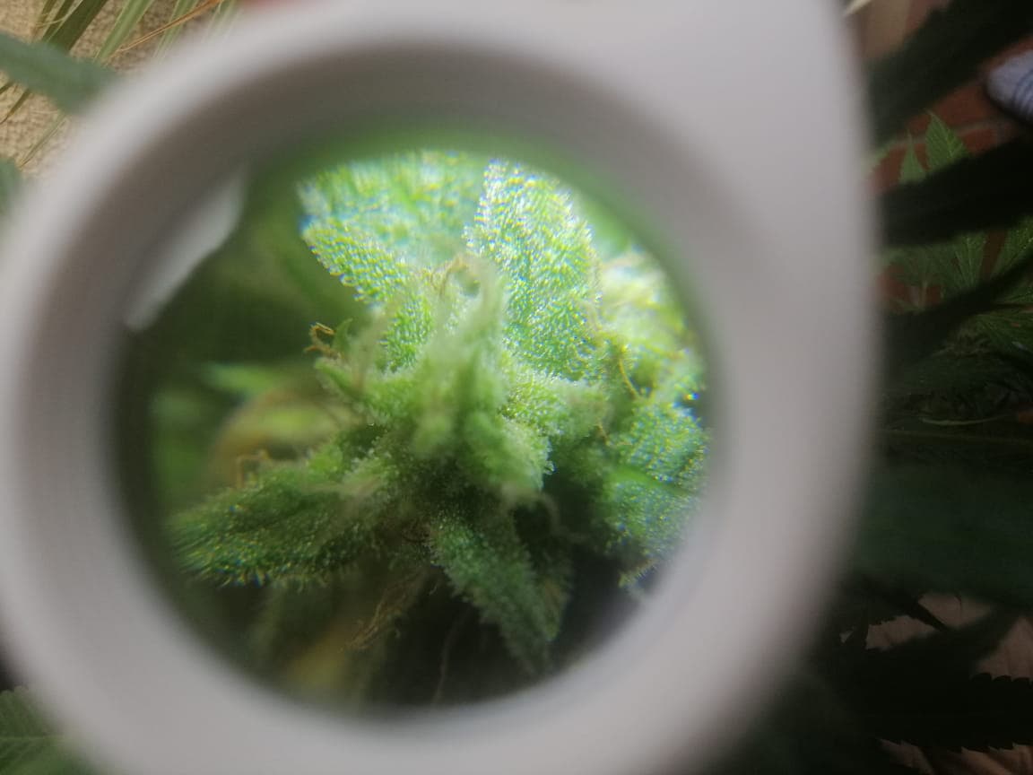 Da jetzt 1 Woche vergangen ist wollte ich nochmal nachfragen. Ich habe mir jetzt auch eine Lupe mit 30x vergrößerung bestellt die so in 4-6 Tagen hier sein sollte. Aber ich möchte auf Nummer sicher gehen das sie jetzt noch nicht ernte reif ist oder eben doch.