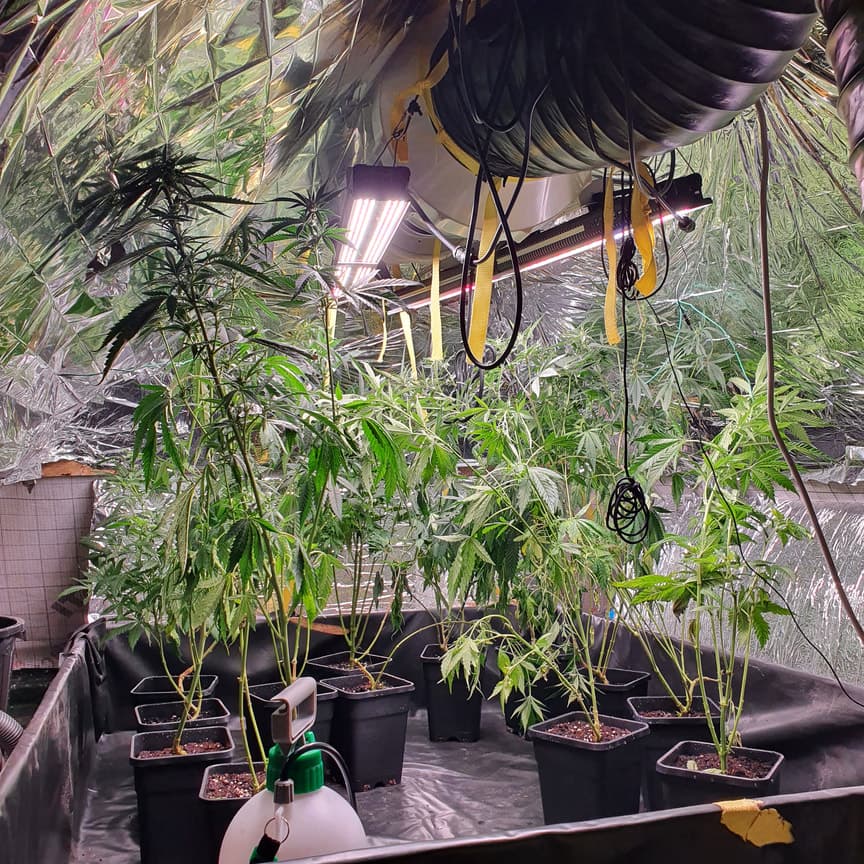 Fehler aus denen ich noch gelernt habe sind bezüglich der Ventilatoren, hatte hinten und vorne welche direkt auf die Pflanzen gerichtet und diese haben sich sehr schlecht entwickelt. Außerdem hat die Ausleuchtung der SP3000 nicht ganz gereicht für diese Menge. In Zukunft nur die hälfte Pflanzen, dafür aber fettere.