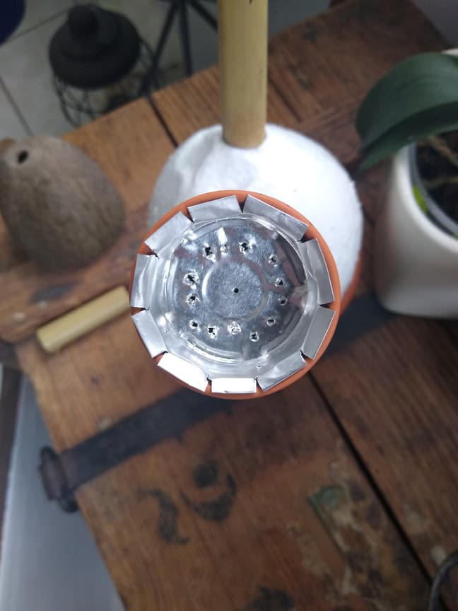 Dieses lackierte Blechdings da, hoffentlich ist der Lack eingebrannt. Terpene sind nämlich ein prima Lösemittel😉