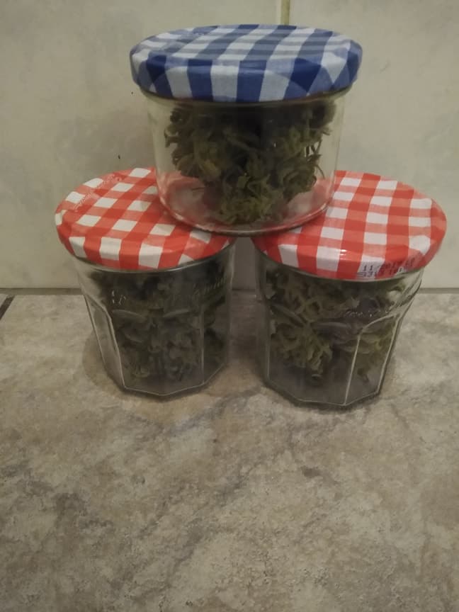 und beim letzten grow hab ich nur den trockenen stengel entblütet - alles ins glasl, und bei offenem deckel in die schublade