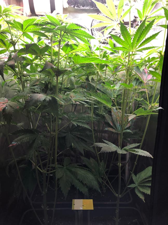 Die Panama (vorne rechts) ist ne typische sativa, wächst immer weiter, nur die Lampe geht nicht weiter nach oben, muß ich mal runterbinden die Tage.