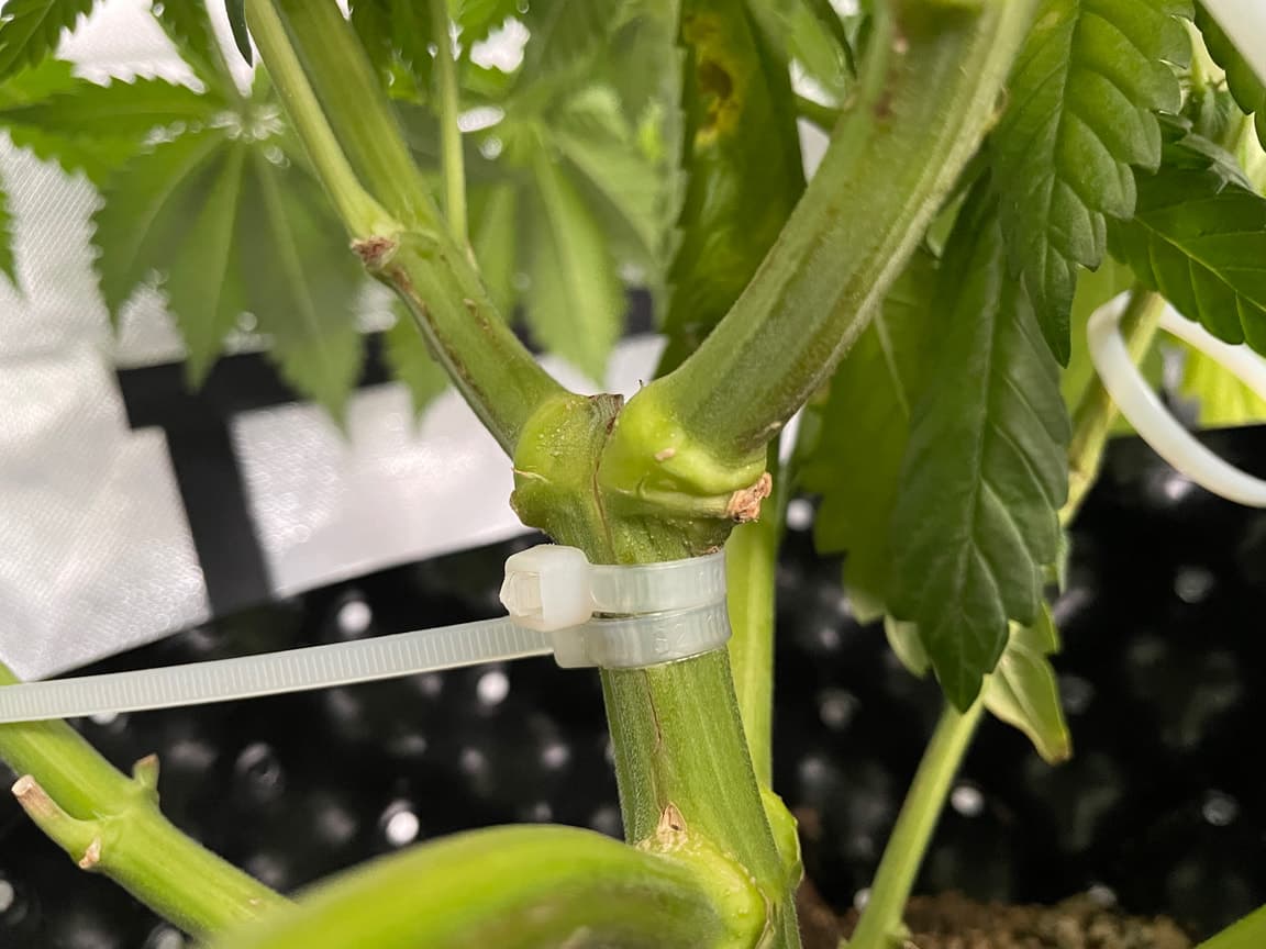 Leider ist mir bei der Fruit Cup der Hauptstamm beim LST genau in der Mitte gespalten 😭 das war auch ein riss im Herz, ich habe die direkt mit kabelbindern wieder geflickt und sie wächst seit Tagen ganz normal weiter 🙏🏼