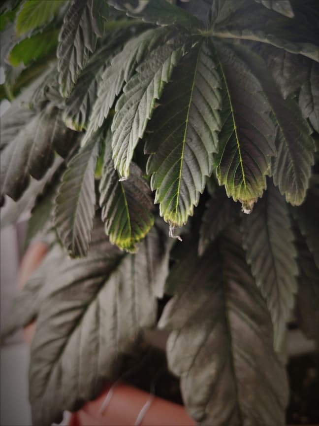 Meine Diagnose war Nährstoffbrand - eventuell etwas zuviel gedüngt? Ich habe daher das letzte mal nur mit reinem Wasser gegossen, damit sich da nichts schlimmeres entwickelt, und ein zu hoher EC Wert ggf. ausgeglichen wird.