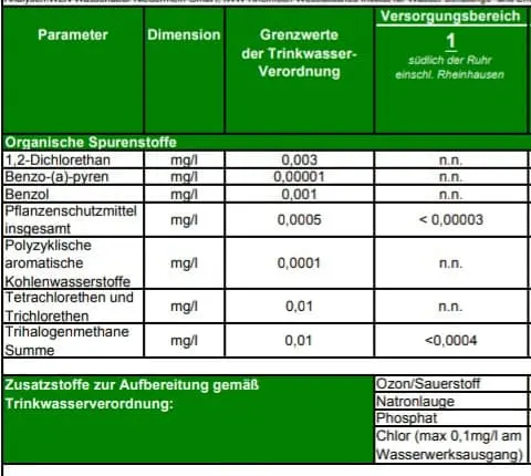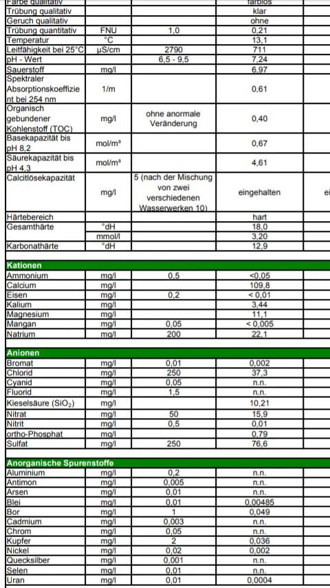 da auch bei mir so langsam mal angekommen ist das die Werte vom Leitungswasser mit dem man gießt von essentieller Bedeutung ist für die Nährstoffaufnahme meiner plants. Deshalb habe ich mir eine Liste meiner Wasserwerte von den Örtlichen Stadtwerken besorgt. Trotzdem habe ich immer noch überhaupt keine Ahnung was jetzt gute und was schlechte Werte sind. Ich poste hier einfach mal den Screenshot davon in der Hoffnung ihr könnt mir sagen ob mit der Brühe aus meiner Leitung problemlos gewässert werden kann ohne was dran zu machen oder ob ich zwangsläufig was dran ändern muss.