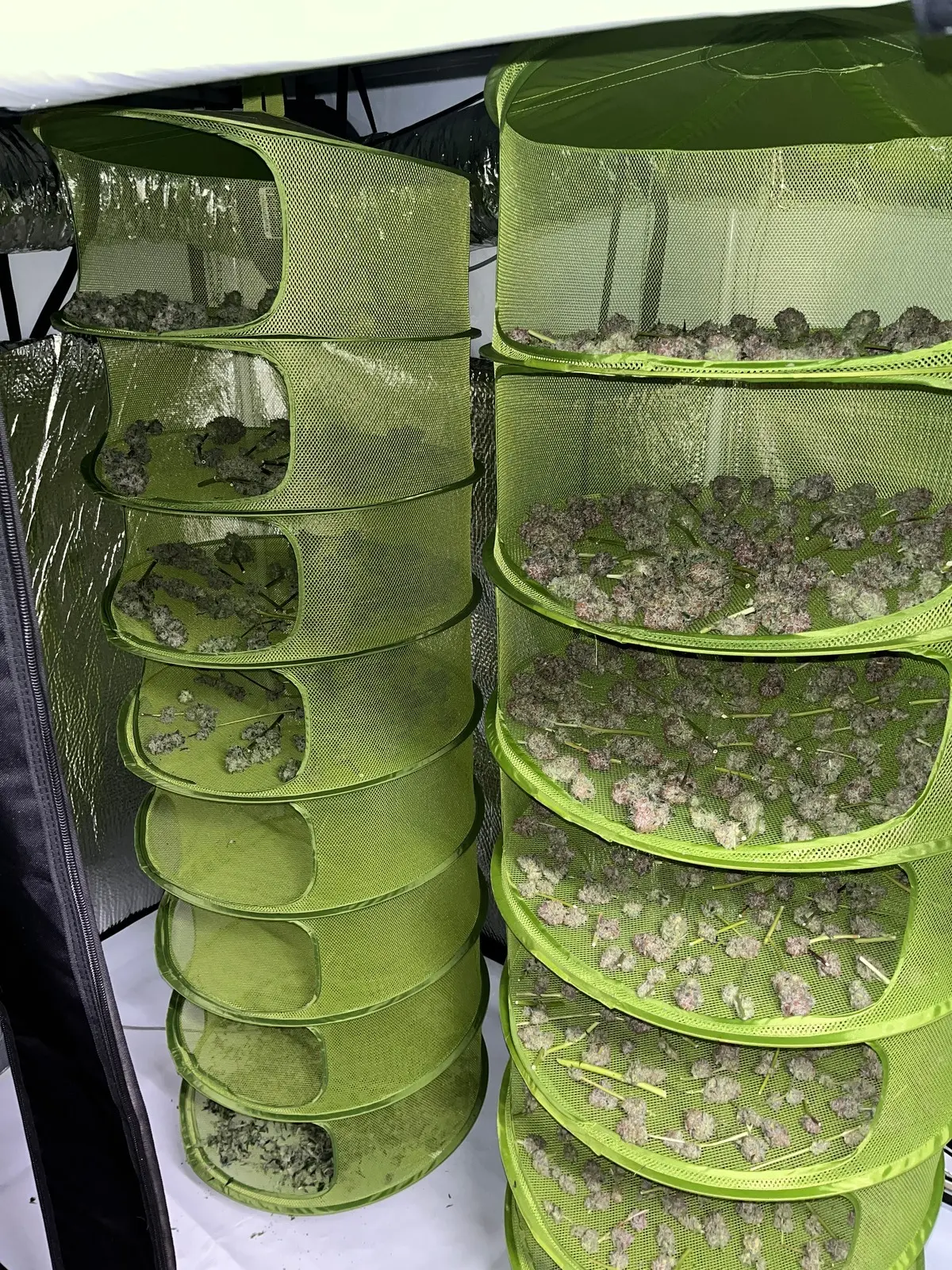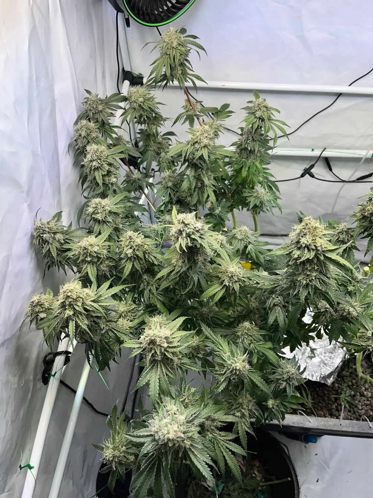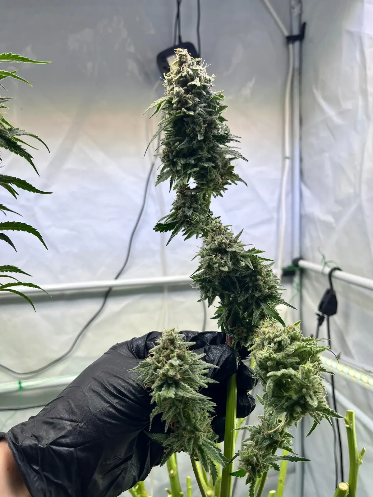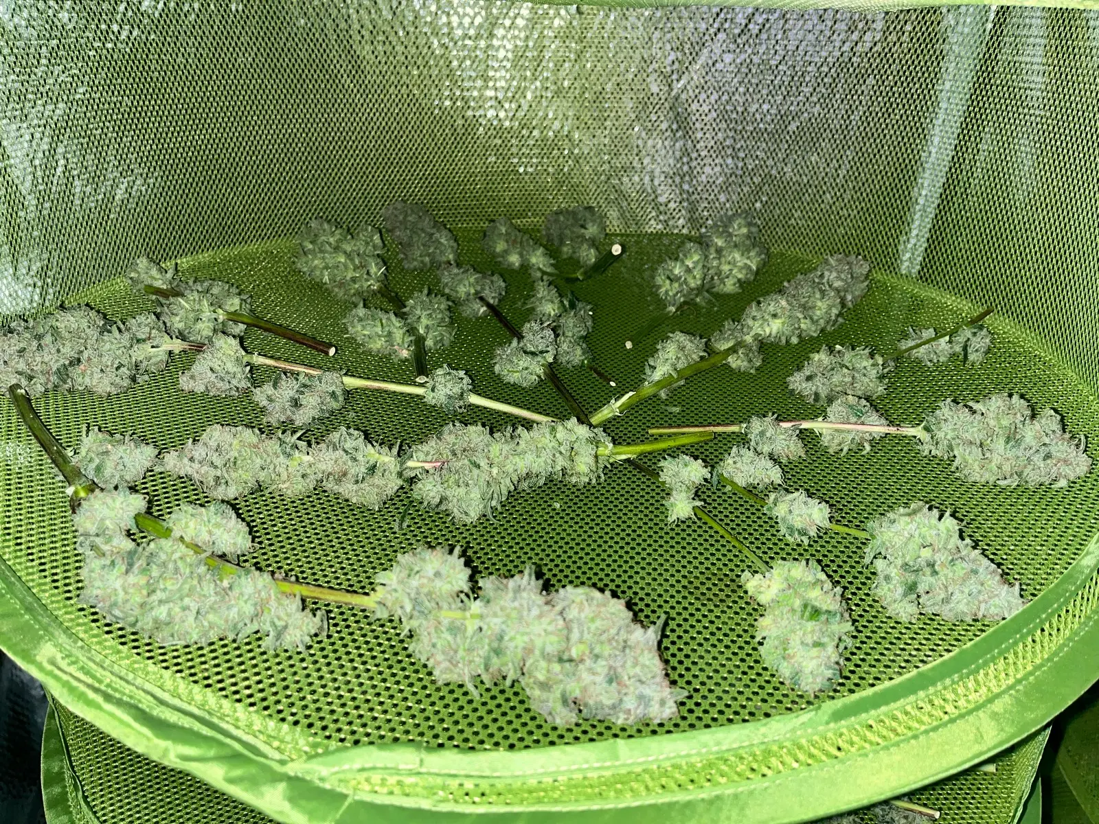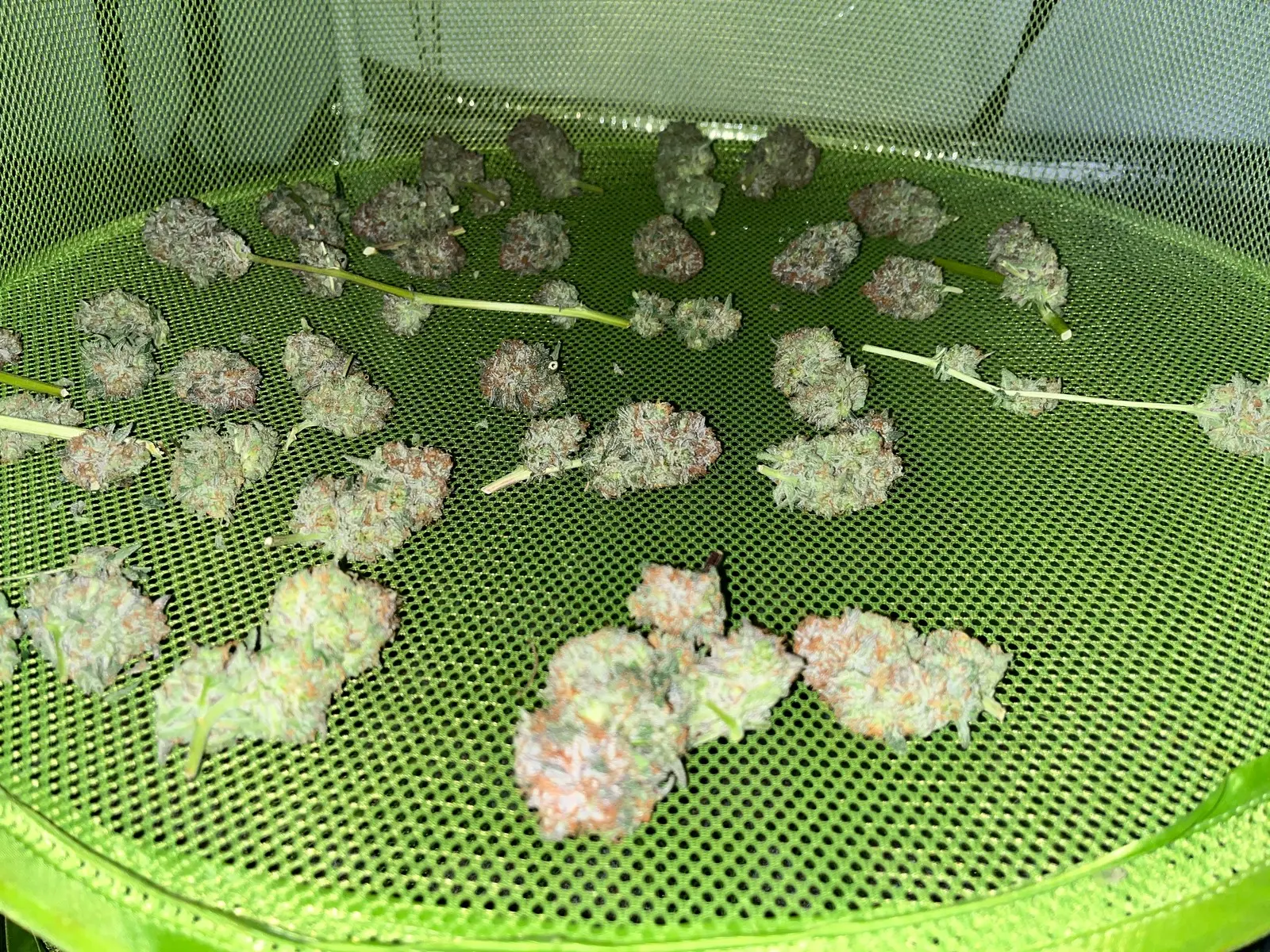 Und hab beide abgenommen musste ich. War aber trotzdem eine gute Entscheidung der linke Pheno war jetzt nicht so toll ganz schön Krautig das ding aber Voll mit Harz . Viel Masse scheint der eh nicht gemacht zu haben Buds sind zwar groß aber die Struktur ist einfach so Unterschiedlich. Der eine der mit den Braunen Härchen da sind die buds sowas von compakt, fest und schwer. Bei dem andern sind die Buds zwar groß aber nicht so hart. Hätte ich die Wahl würde ich immer den andern bevorzugen. Obwohl ich das jetzt nur aus wachstums- und Budstruktur und Ertrag festmachen kann ich bin gespannt wenn es trocken ist.