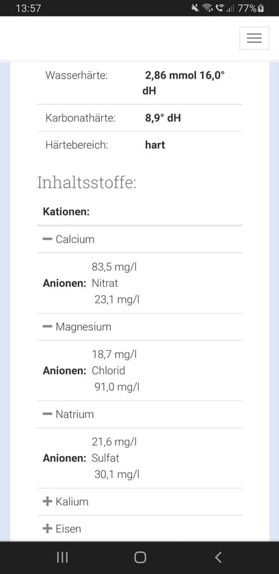 Bei den angehängten Bilder hatte ich mich orientiert und auf dem ersten sind die Wasswerte von den Wasserwerken.