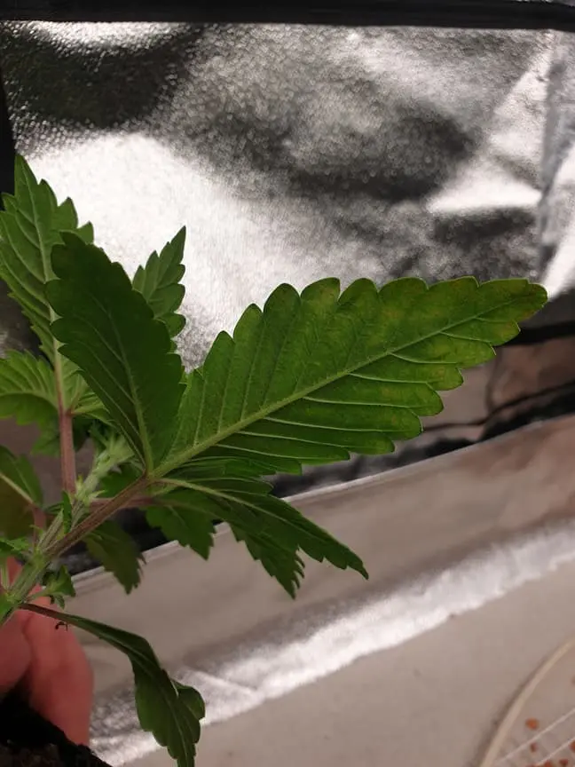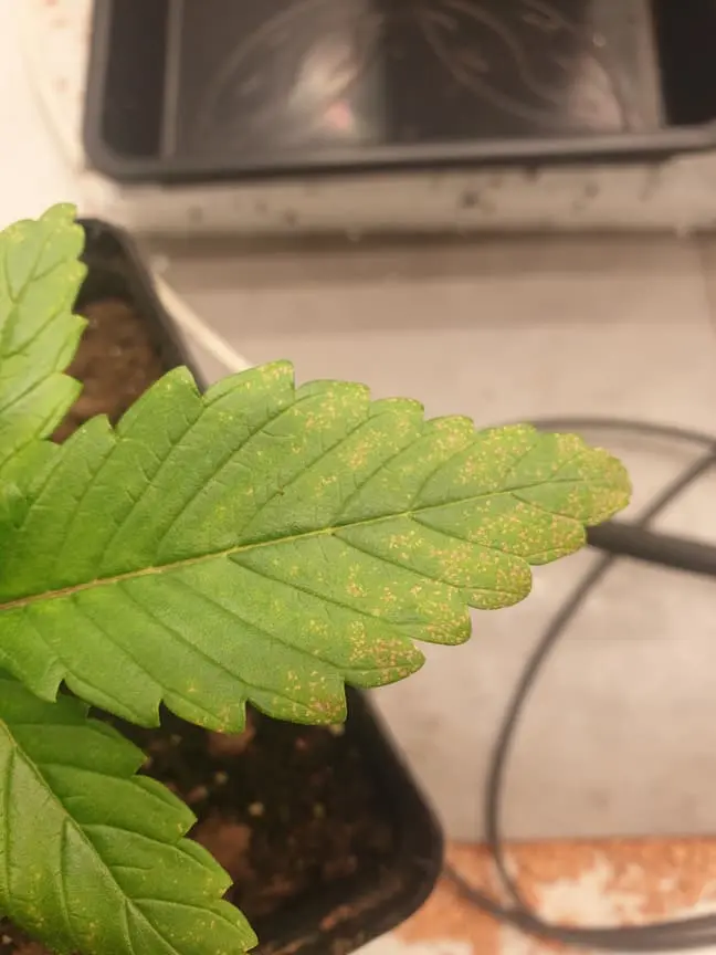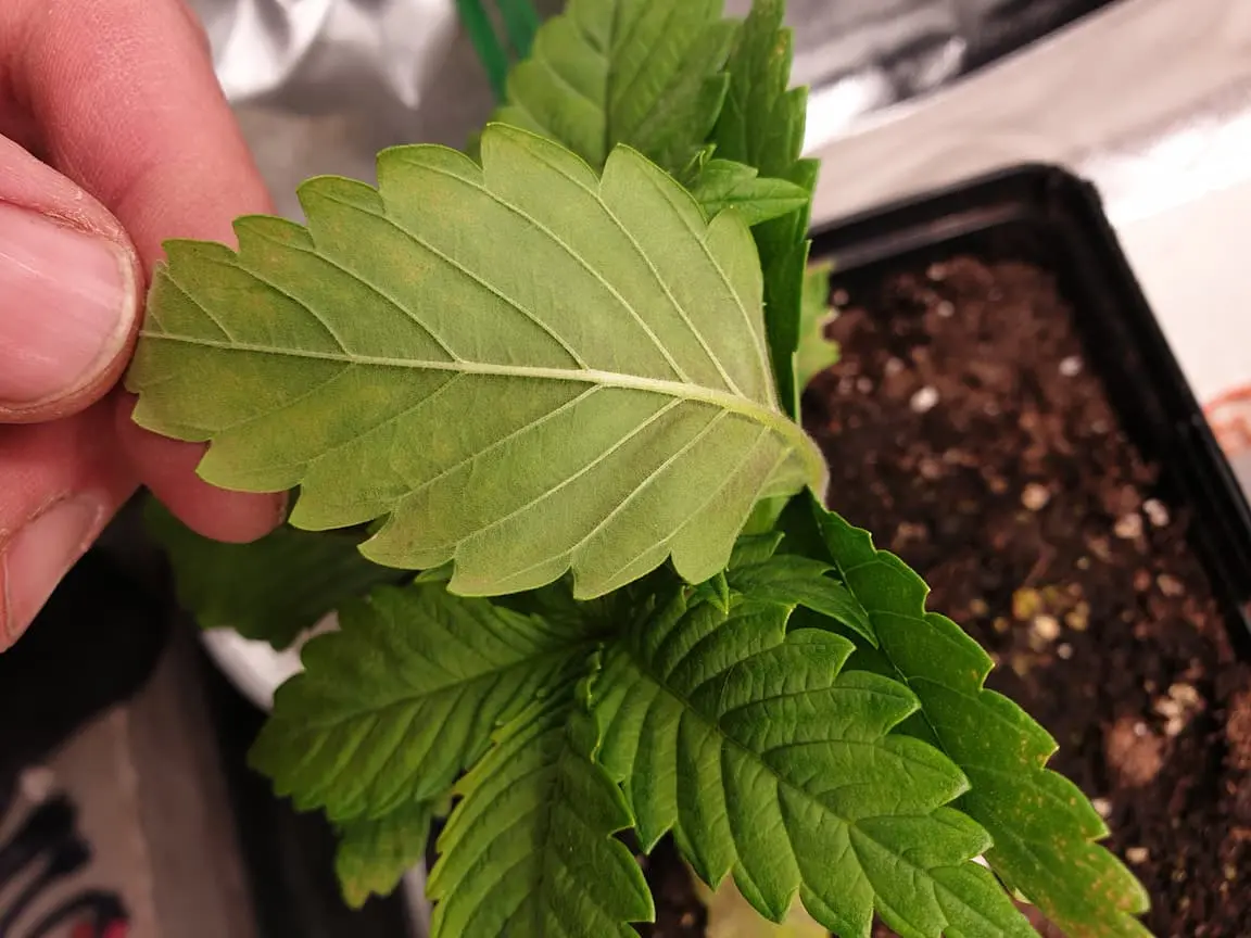 Habe seit dem Umtopfen vor 5 Tagen von 0,5l mit Anzuchterde in die nächsten 3l Töpfe mit Floragard Growmix diese Flecken entdeckt. Wasserwerte und alle anderen Werte sind im richtigen Bereich.