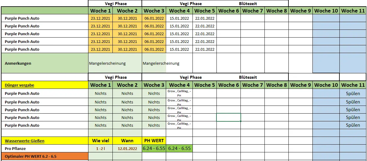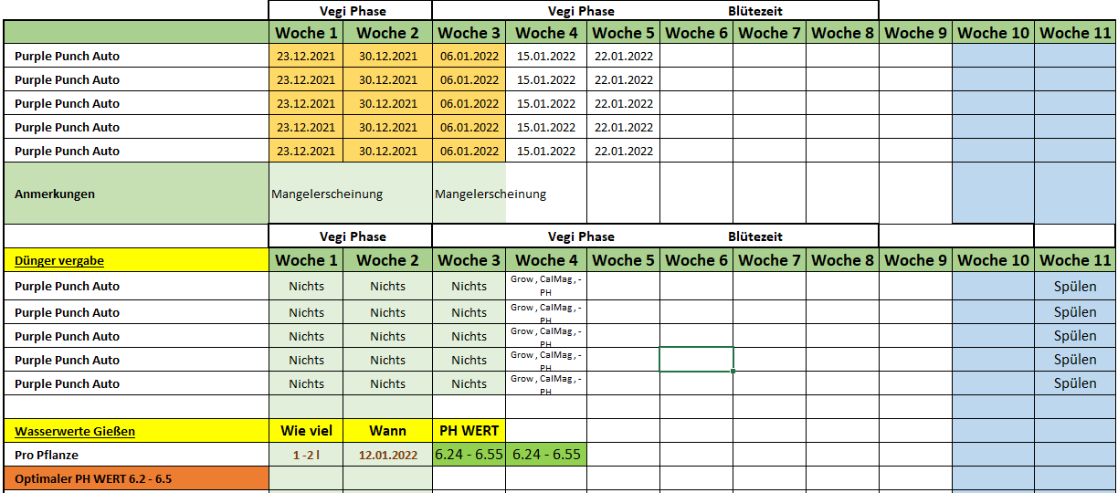 Infos welche Woche die Pflanzen sind etc findet ihr als Bild Anhang. Wasserwerte ebenfalls.