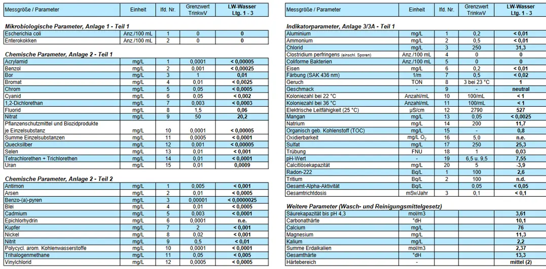 Nachtrag Wasserwerte: