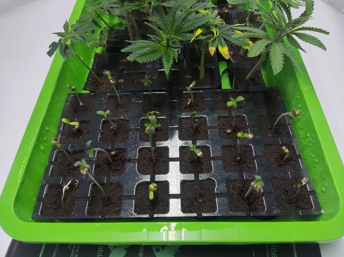 Steckline sind geschnitten und neue seeds schon angesetzt. (Die Stecklinge kommen nur zustande weil ich es nicht übers Herz gebracht habe sie wegzuwerfen beim untenrum ausschneiden) ![]()