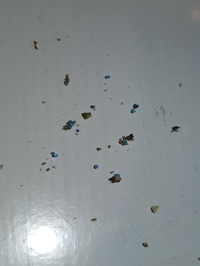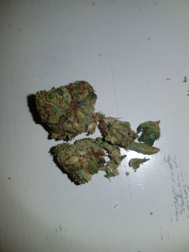 Hallo ich hab mir heute auf der Straße etwas Zeug geholt und nämlich ist mein Gras ist voller blauer Kristallen die reflektieren.