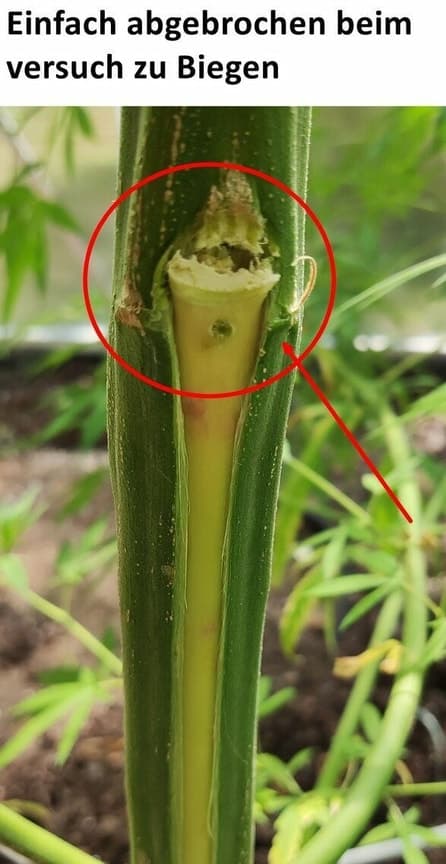 bei der die noch steht, sind einfach so 2 Äste abgebrochen die ich etwas biegen wollte ....ist das Normal ? scheint richtig ein kleines Loch in der Pflanze zu sein ....