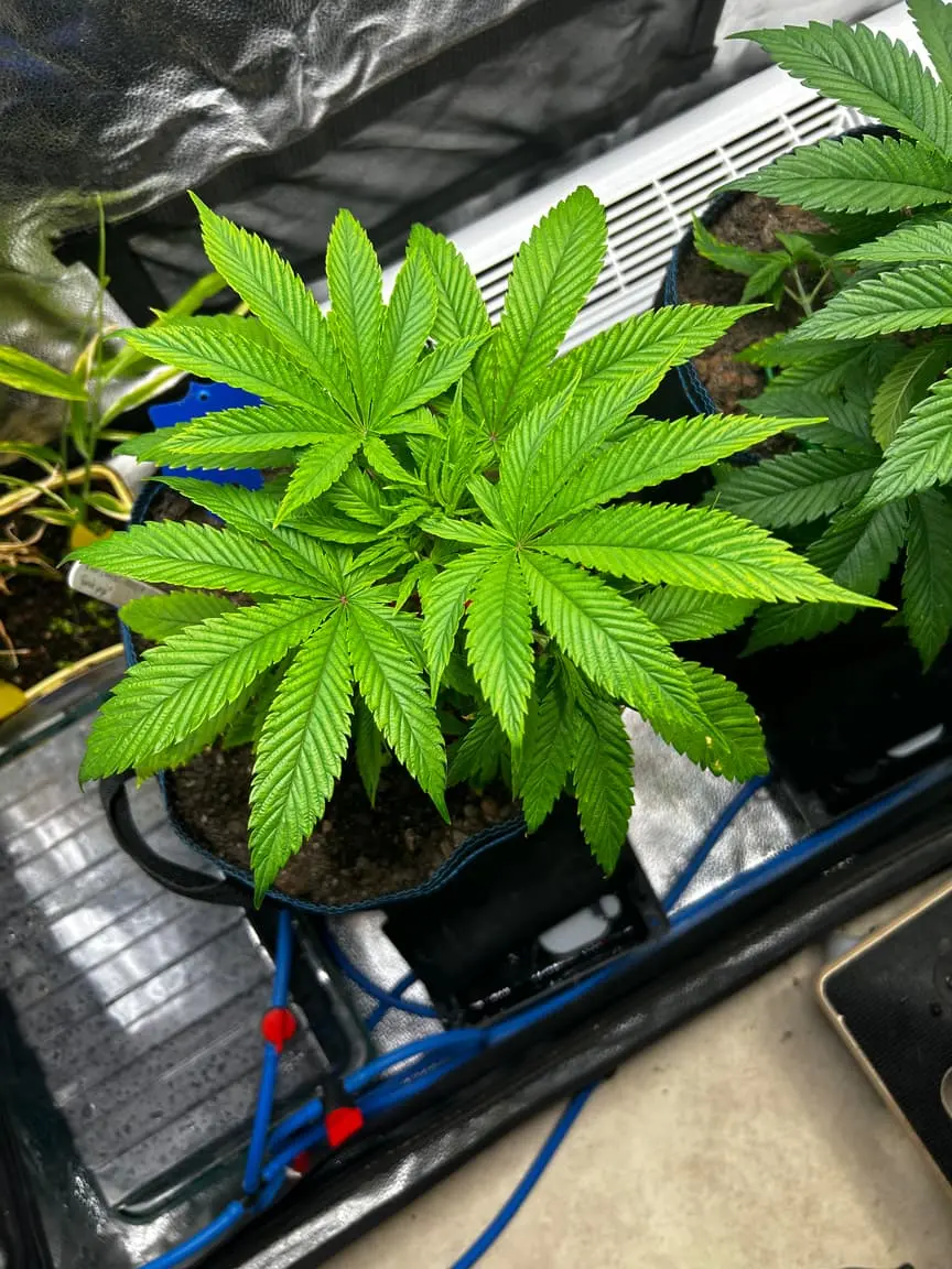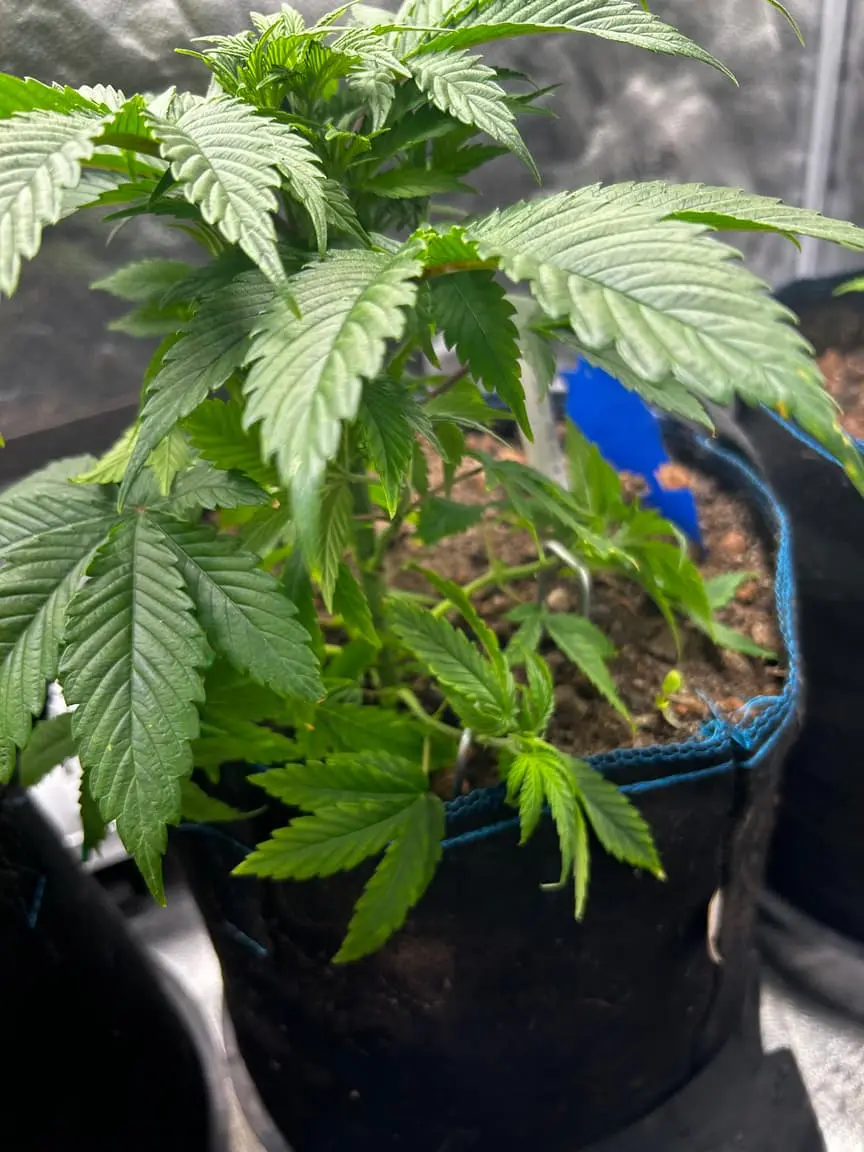 Die im plastiktopf würde ich schnell anfangen zu biegen. Sehr dünne Ärmchen und relativ große internodien… Stell die doch mal in die Mitte. Evtl zu wenig Licht?