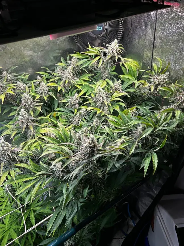 Die beiden White widow automatic sind recht gut im Zelt angekommen. Vor vier Tagen bekamen sie NL Ripen mit Wasser 1,5:1; gestern gab es 1:1 und morgen gibt es dann Ripen-Nährlösung ohne zusätzliches Wasser. Wird krass eng im Trockenzelt sollten die drei WWA‘s und die Special Queen gleichzeitig fertig werden…