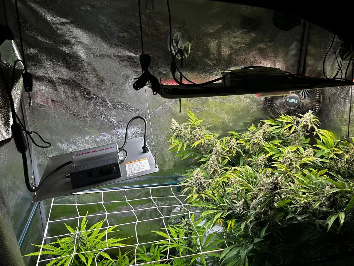 Um mehr Linalool (entspannendes Terpen) rein zu bringen, wird in ein paar Wochen ein Teebeutel mit Lavendelblüten in den zweiten Zelttrocknungsbeutel gepackt.