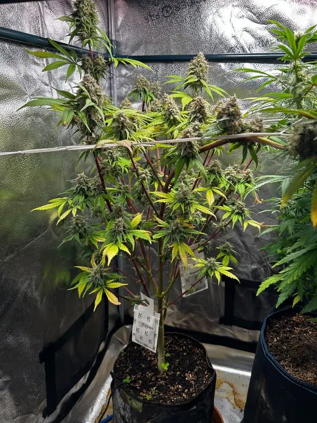 Alle Achtung, die beiden Euforia werden sehr schön grün, das röteln der Stiele hat aufgehört und es schießen überall Blüten raus. 🥰 GHE (Gut, Hilft Echt!😅) im Tank reißt es raus! Die PEV gsc hat heute ripen bekommen, mal sehen wie lange. Die Buds sind schön groß und richtig stinkig, viel Laub ist nicht mehr da. Aber nicht defoliert, sondern nur die Blätter entfernt, welche sich einfach abzupfen ließen. 😅 das wird bei den Euforias anders, da muss ich noch was Luft machen.