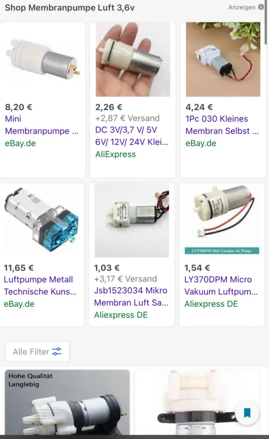 Wenn du mal nach 3,6V oder überhaupt Gleichstrom Membranpumpen suchst, sind die erstmal nur 3,50 und dann sind das diese Billigmotoren, die ne absolut Drecksplaste Exzenterscheibe antreiben. Ich prognostizier dir bei dem Ding ne Lebensdauer, die sich in Stunden misst.