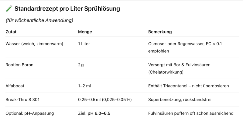 Naja, Chat GTP hat mir jetzt was für mein Blattfeeding ausgerechnet und damit probiere ich es jetzt erstmal: