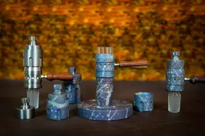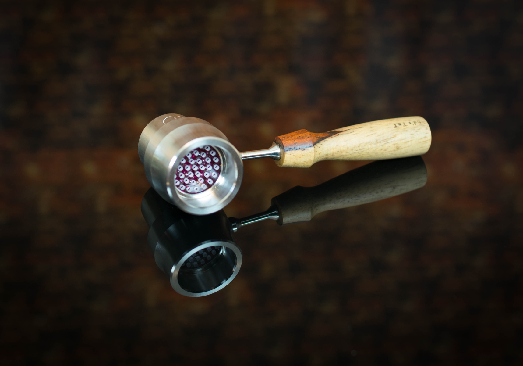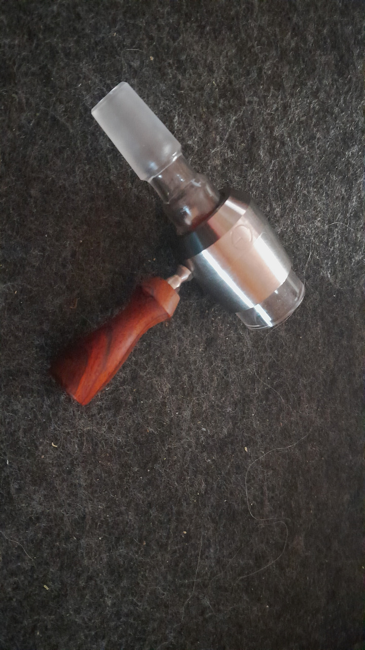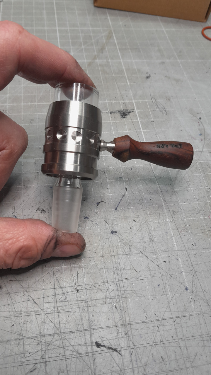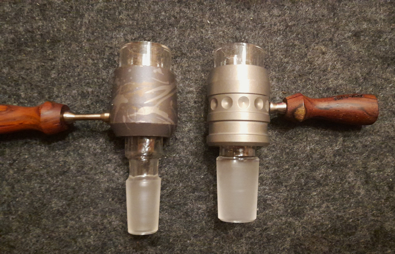 Es gibt diese günstige Aluguss-Pfeife … Ich habe dafür mal einen Adapter gebaut, damit ein 14 Schliff passt, aber die Pfeife.. Die müßte man ein wenig größer aus Titan bauen;)