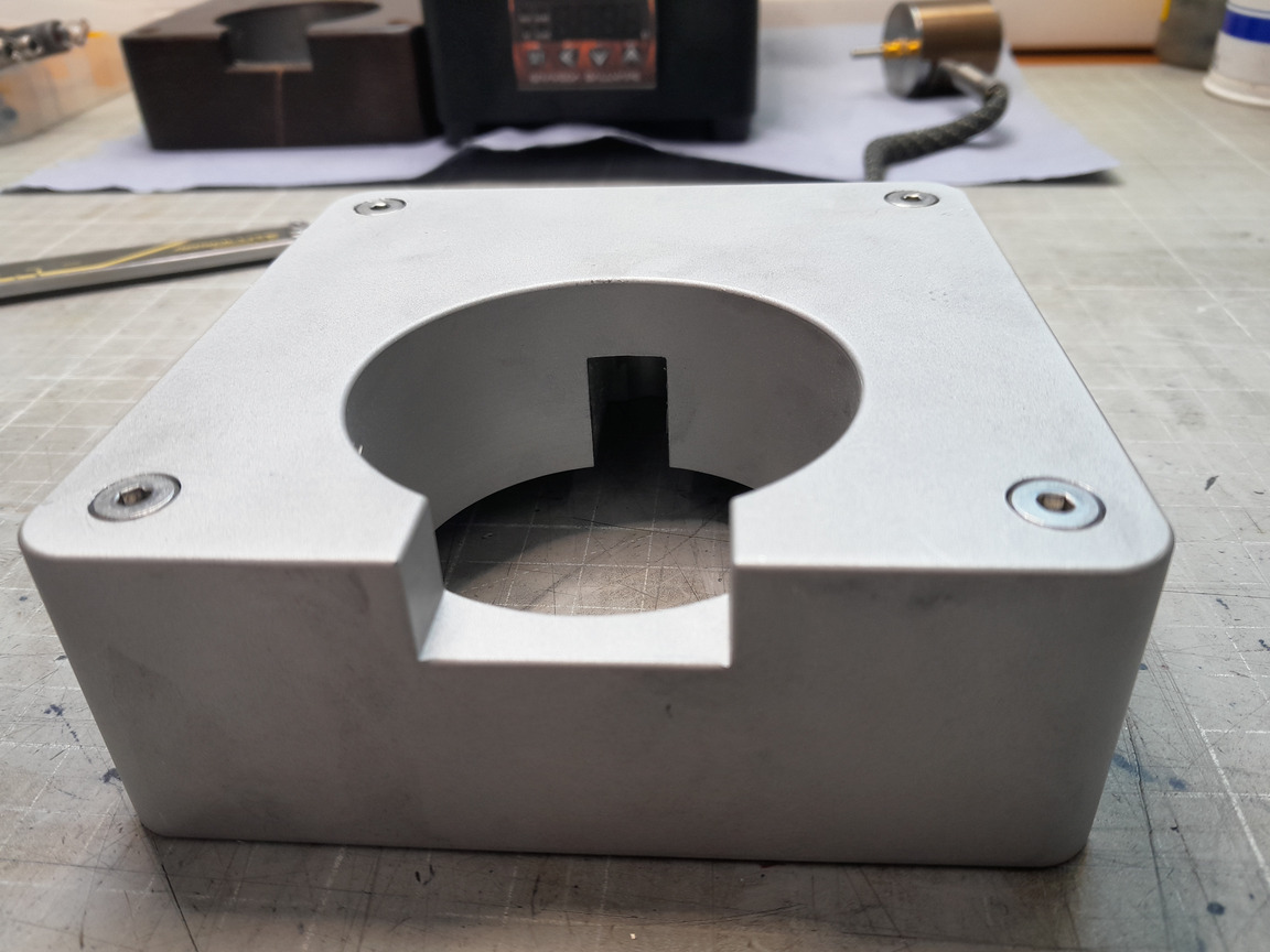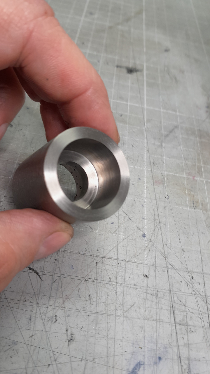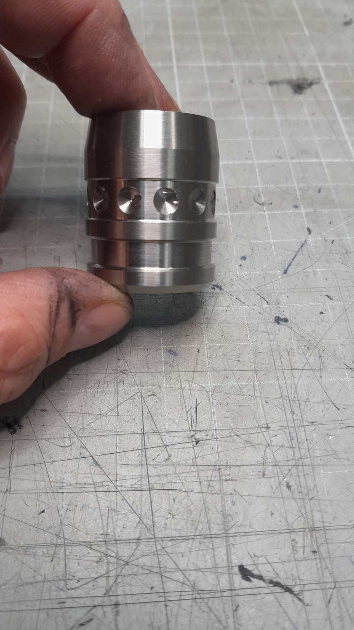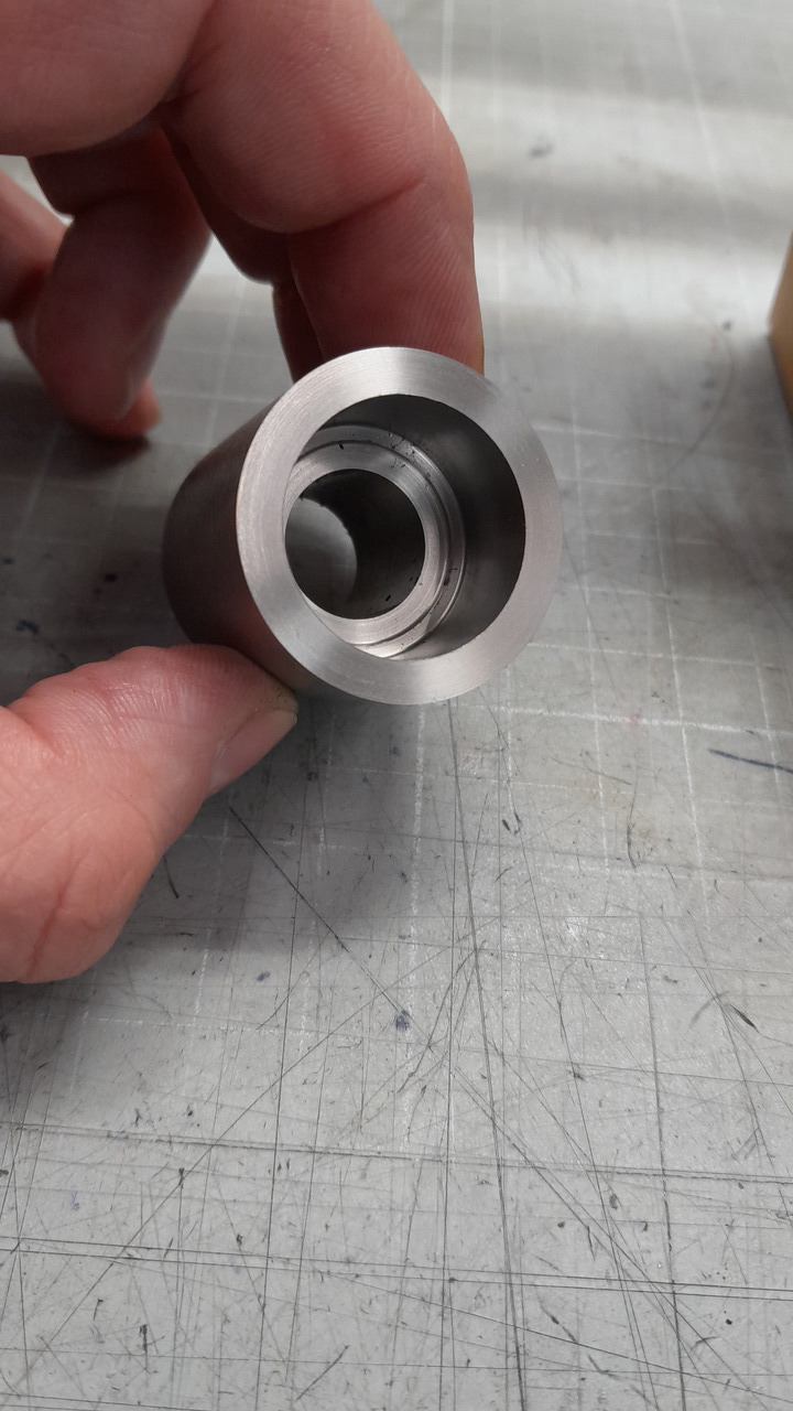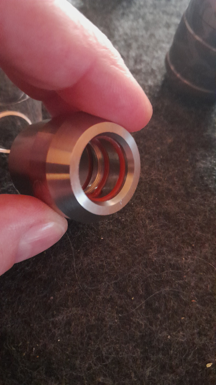 Die Matrix von CH habe ich mir ja ein wenig optimiert. Sie hat einen 2O-Ring bekommen und eine Anodisierung. Aber dieses überstehende Glas, hat mich gestört, also habe ich mir einfach einen selbst aus Titan gebaut. Wenn er so funktioniert, wie ich möchte, bekommt er die Tage noch eine Anodisierung und dann werde ich mir noch 2 Stück bauen, damit ich nicht immer von 18 auf 14 wechseln muss.