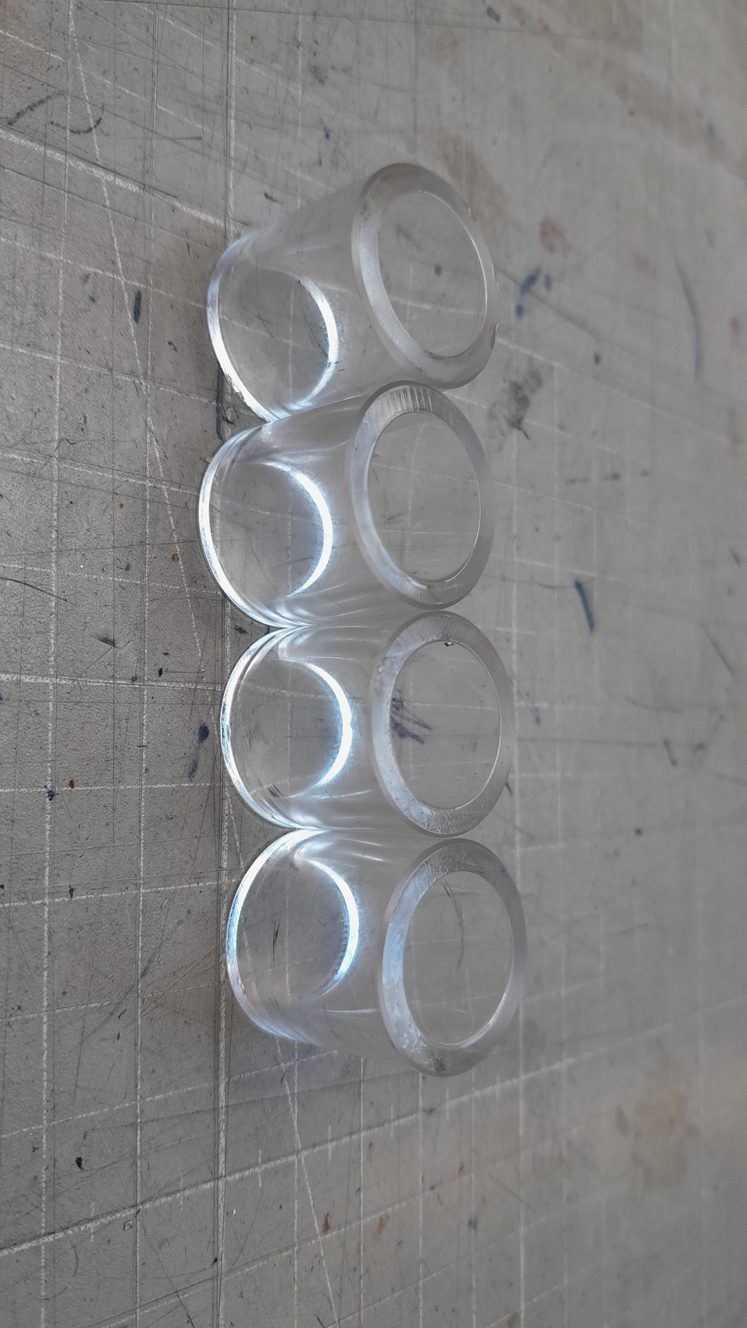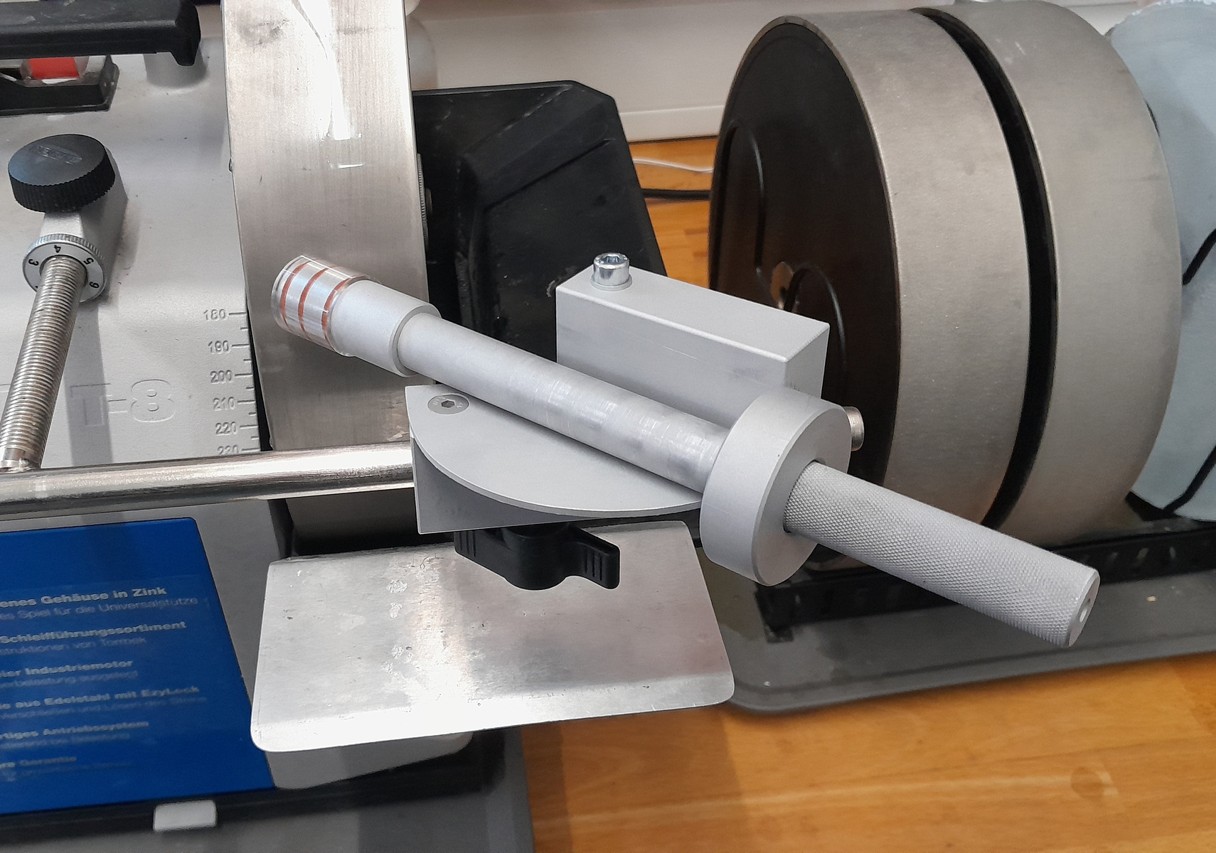 Es ist wieder Wochenende und ich habe wieder Zeit für die Werkstatt, um Sachen abzustellen, die mich nerven. Die Glaseinsätze von Cannabis-Hardware haben manchmal an den Kanten Abplatzer, oder sie sind dort scharfkantig. Das finde ich nicht so schön und es zerschneidet auch die O-Ringe. Daher habe ich mir eine provisorische Vorrichtung gebaut, um dort eine Fase anzubringen.